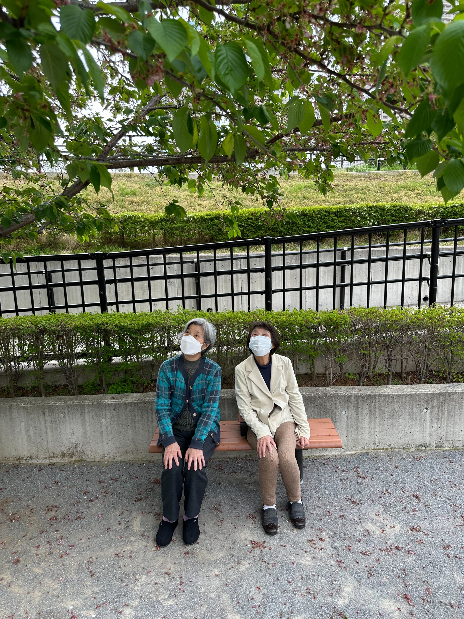 公園でゆっくり座って、涼しい風が吹いています。