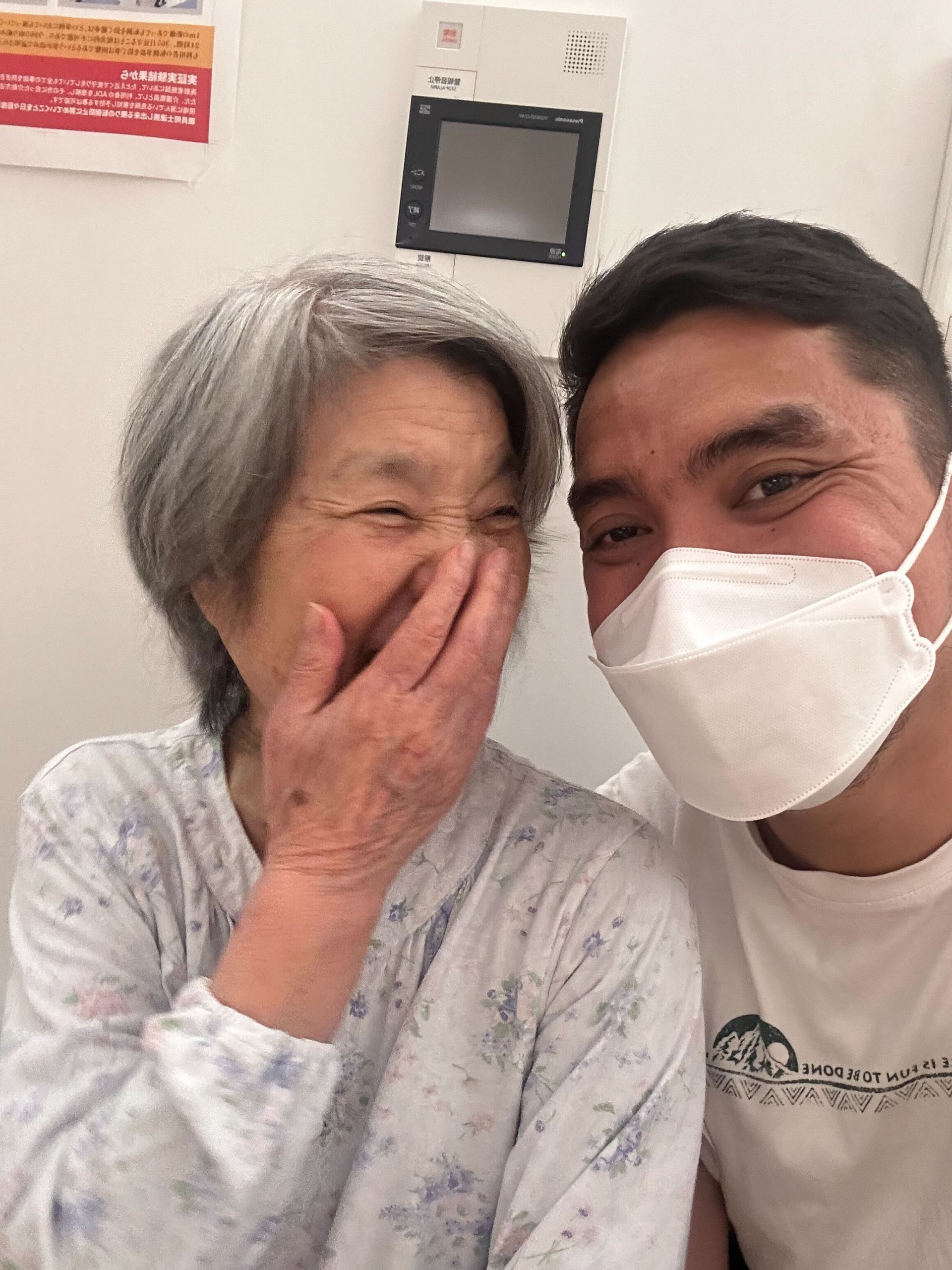 夕食後、スタッフと色んな話をしたり、歌ったりする。笑顔もみられます。