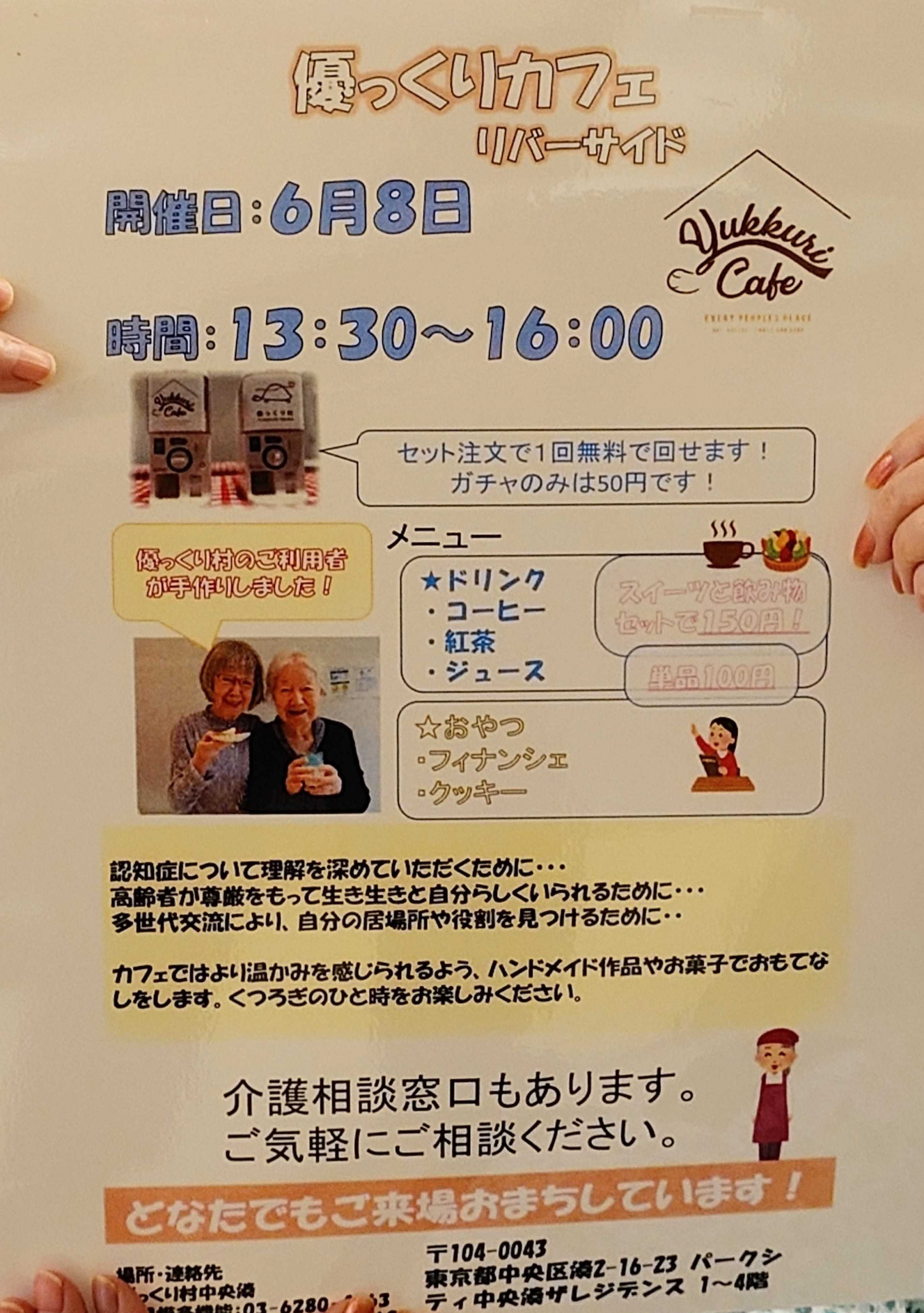 2024.06.03 グループホーム 6月は優っくりカフェがあります Tweet シェアする 開催日:6月8日(土) 時間:13:30~16:00 場所 :優っくり村中央湊 一階多目的室 ぜひぜひ遊びに来てください お待ちしております 優っくりグループホーム中央湊 前の記事 2024.06.10 グループホーム 生け花 次の記事 2024.06.01 グループホーム ランチメニューは。。 一覧へ戻る