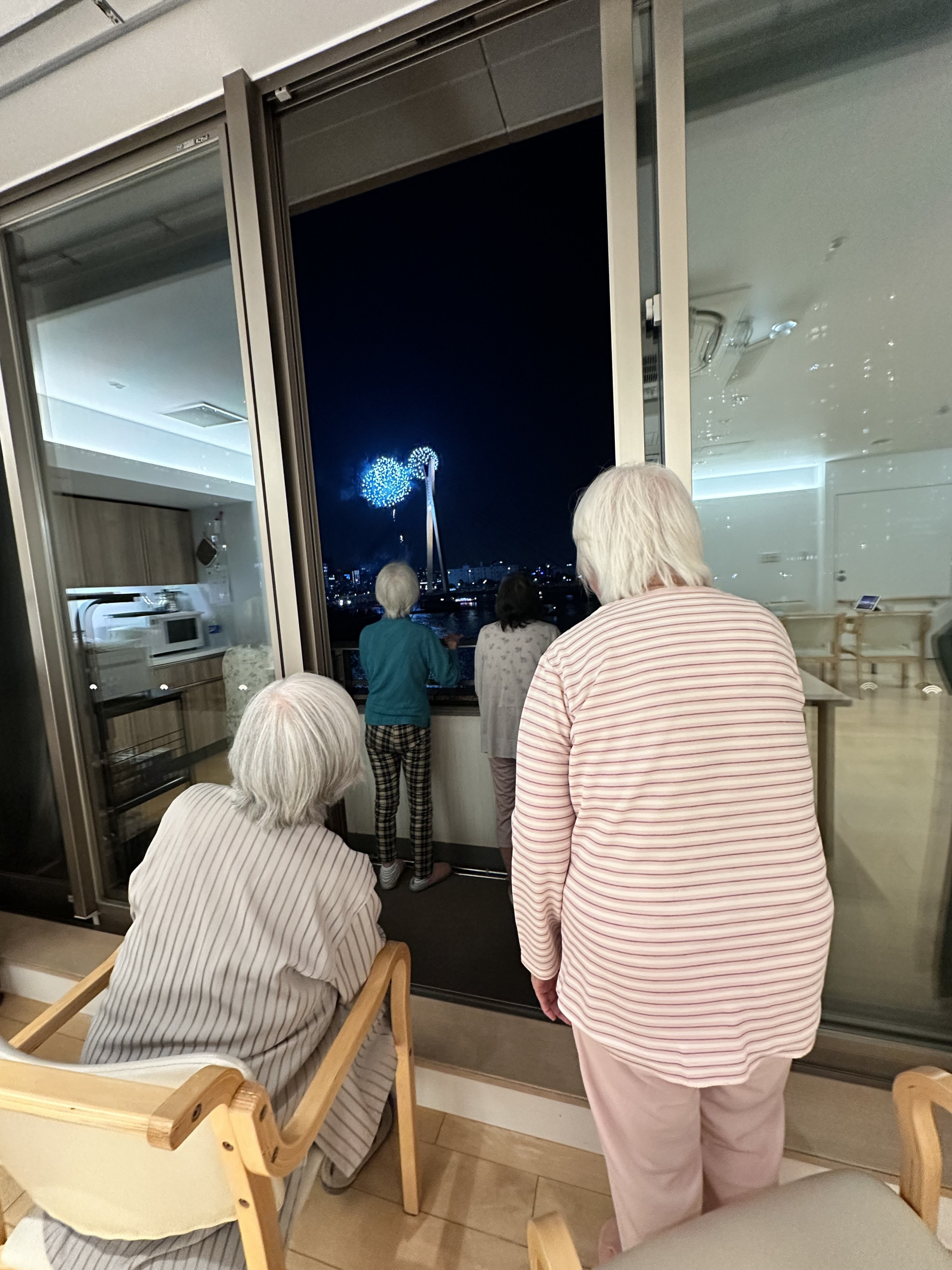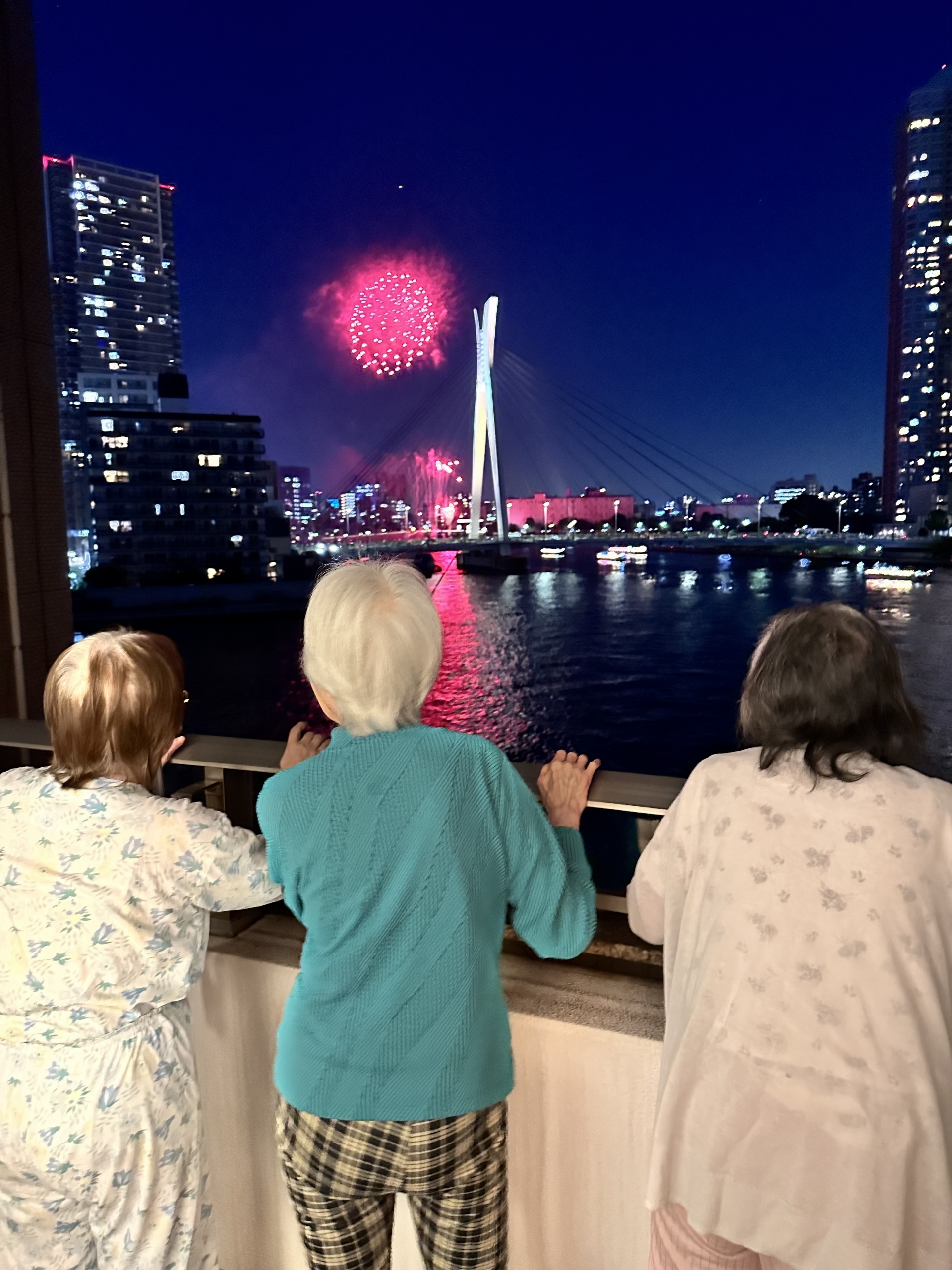 昨日ベランダで花火大会を見ました。 kemarin menonton kembang api di balkon。