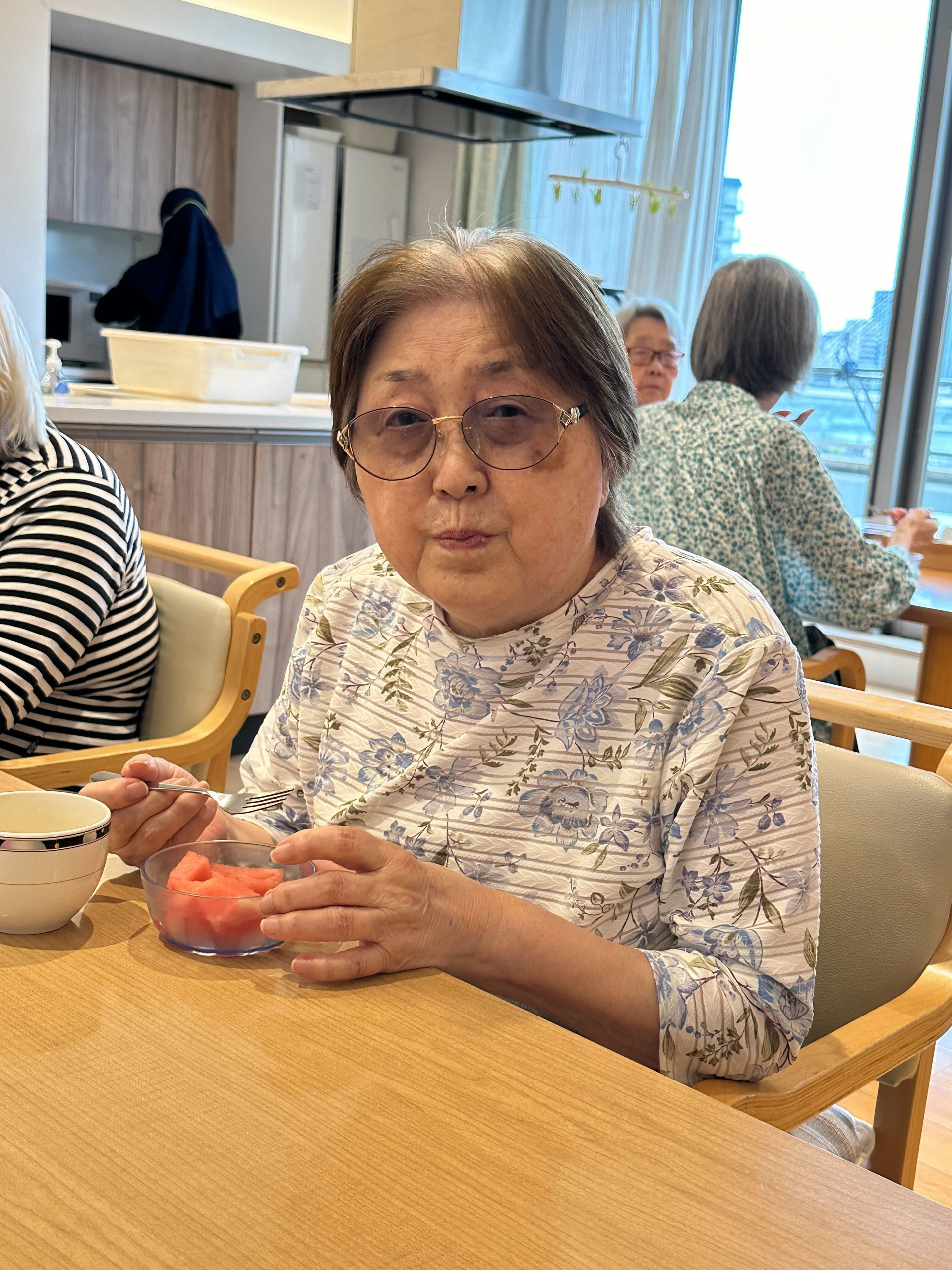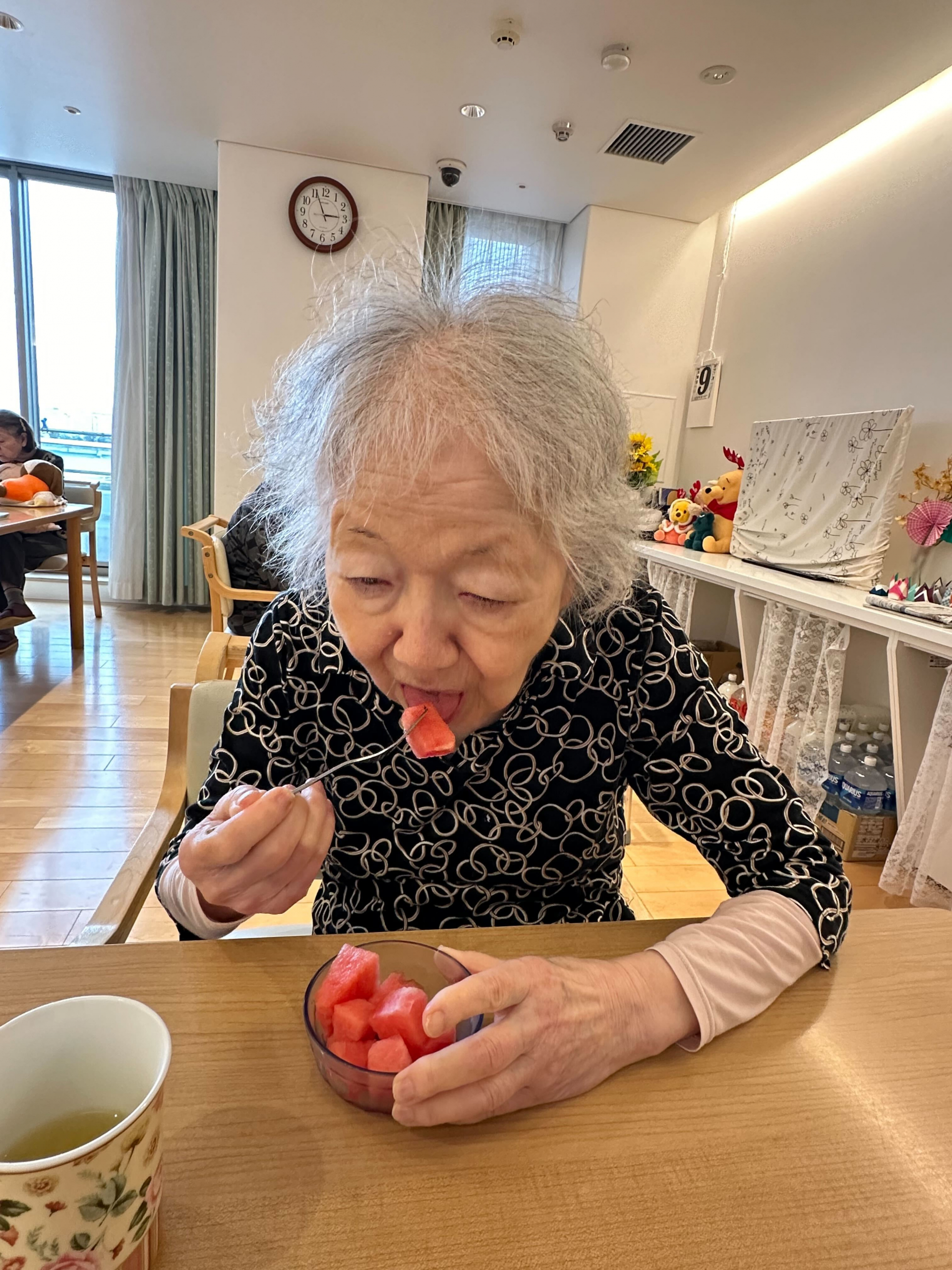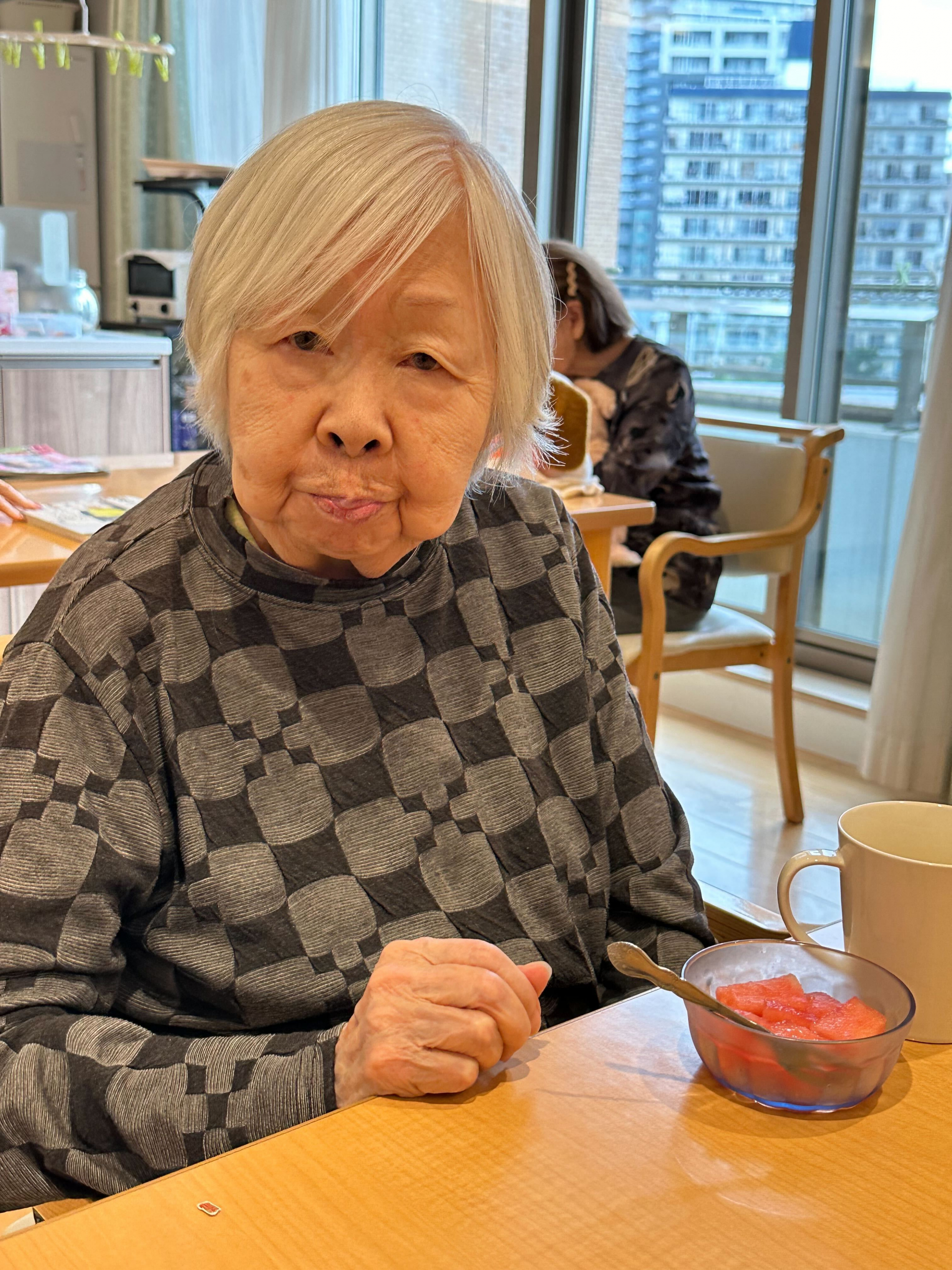 今日は外に暑いですね。おやつはスイカを食べました。