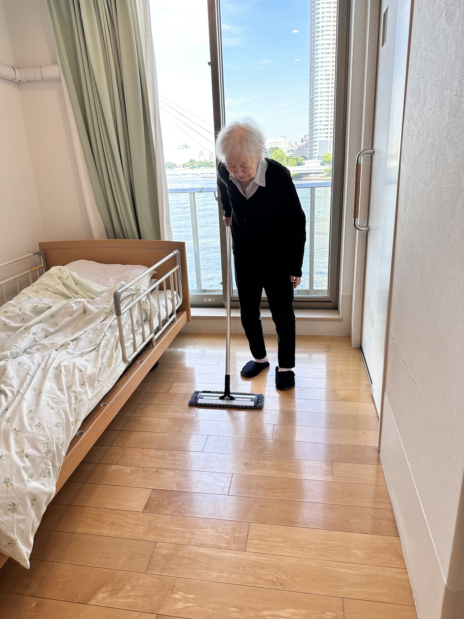部屋を掃除したり、洗濯物を干すしたりする。乾いた後畳みます。