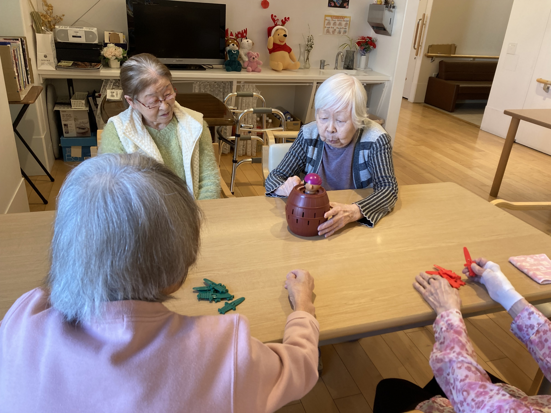 伸るか反るかの大勝負…まではいきませんが、久々の黒ひげ危機一髪の登場です。さあ、誰が当たるか神のみぞ知る世界です。
