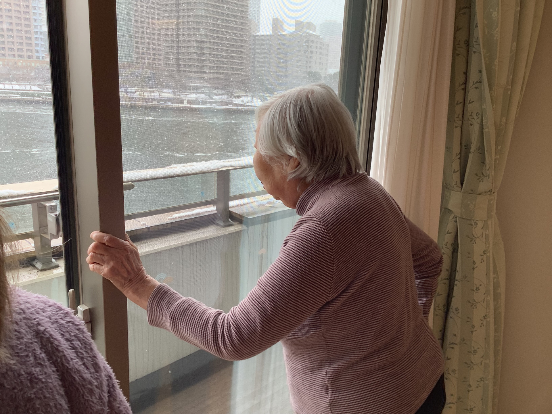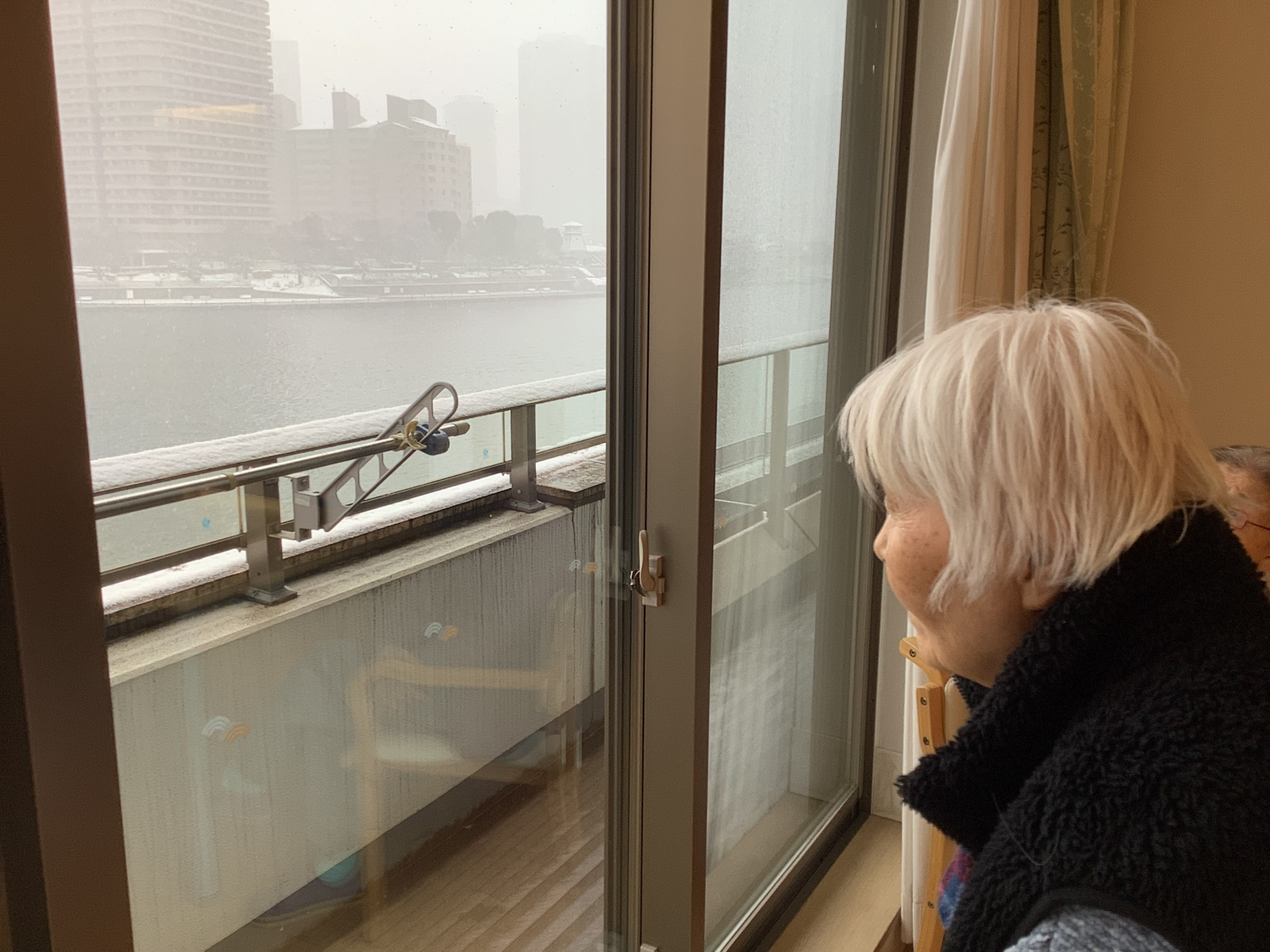「寒い、寒い」と仰りながらも見慣れない雪景色興味津々。しかし、これ雪降ってるじゃなくて「ホワイトアウト」じゃないかな?という言葉が喉まで出かかったしまった…