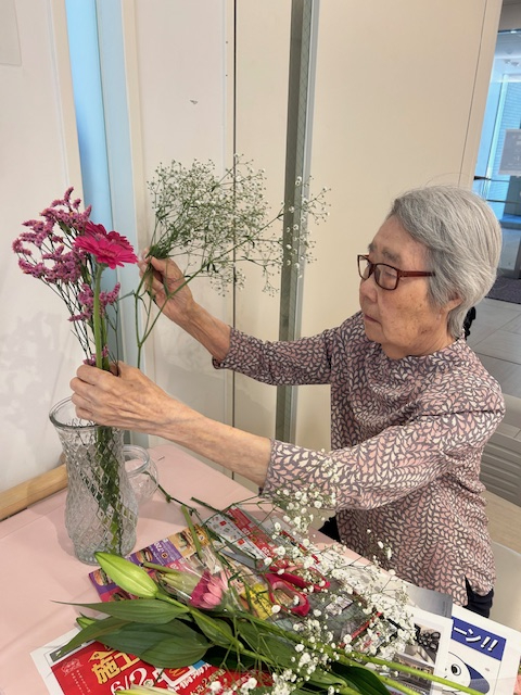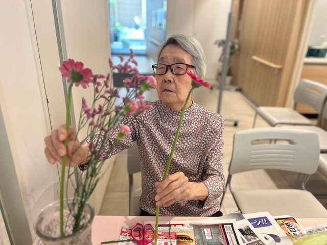 優っくりカフェの飾り付けは、ご利用者様に生け花をしていただきました(*^-^*)