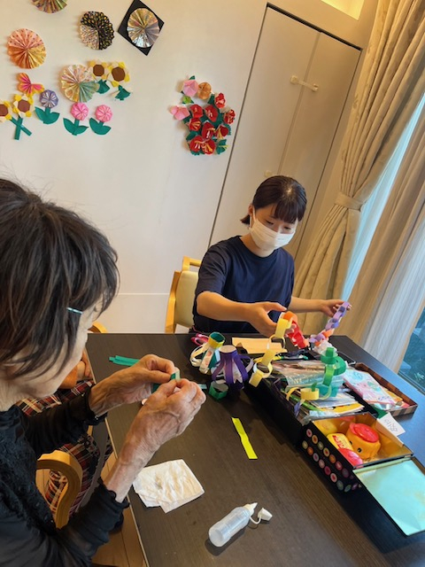 最近は、納涼祭に向けて飾り付けの作成に力を入れています。