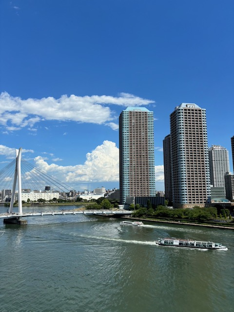 私は中央湊のテラスからのこの景色が大好きです。よし、頑張ろうとやる気がみなぎってきます!!