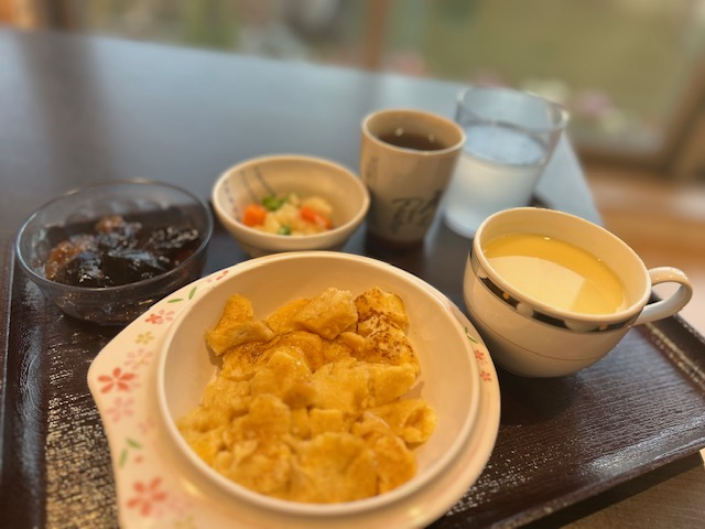 元旦の朝は、メニューに迷いましたが、お昼はおせちということで、ご利用者様からリクエストのあったフレンチトーストにしてみました。