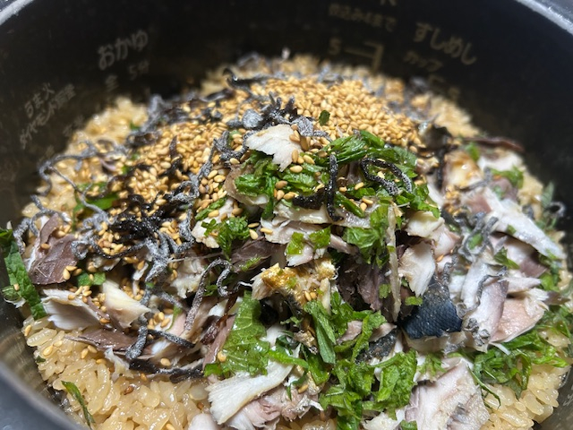 ポイントは、鯖は炊飯器にそのまま入れるのではなく、焼いてから後乗せしたところです。