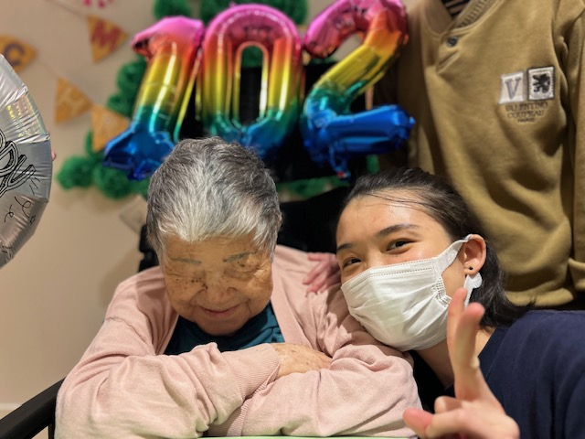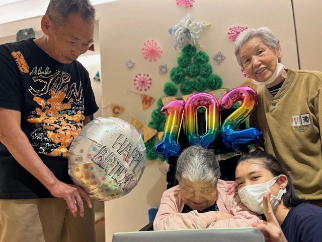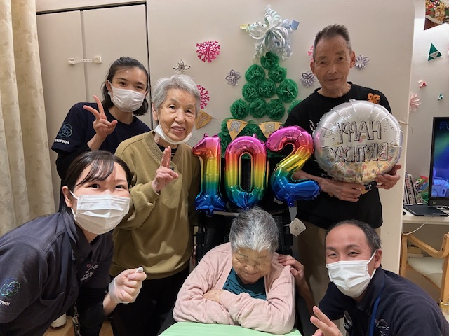 12月に102歳を迎えられたご利用者様と一緒に記念撮影をした様子をお届けいたします。