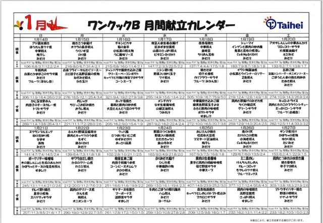 1月食事カレンダー