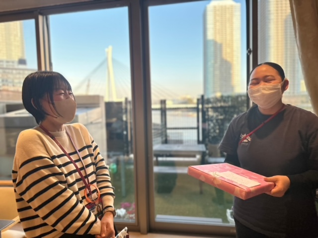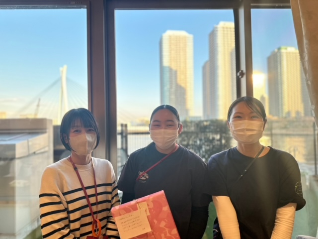 長年ゆかりのある、グループホームの職員さんとご利用者様からお花とプレゼントを…