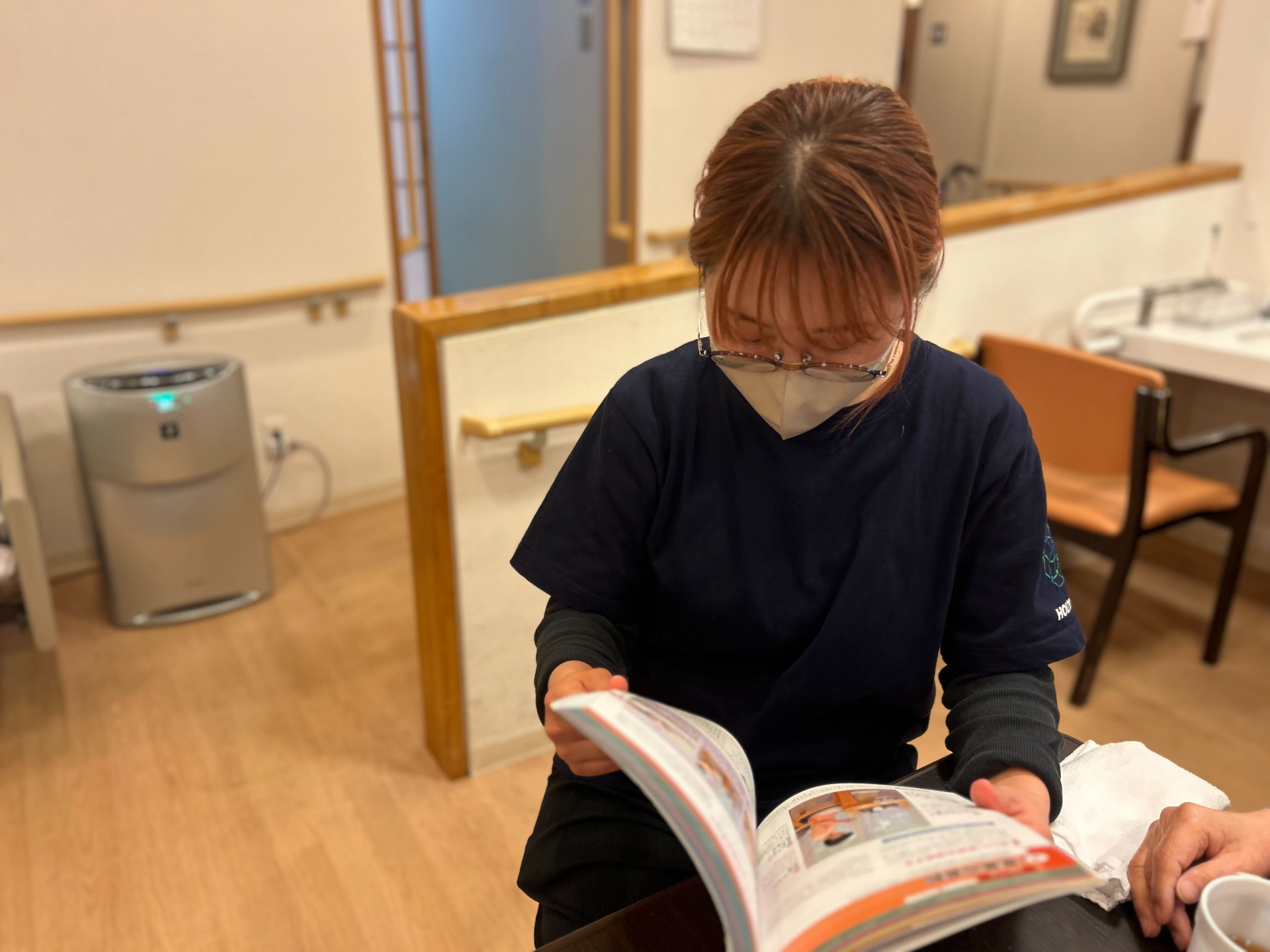 「この本がわかりやすいよと貸していただきました。読んでもいいですか」と酒井スタッフ。