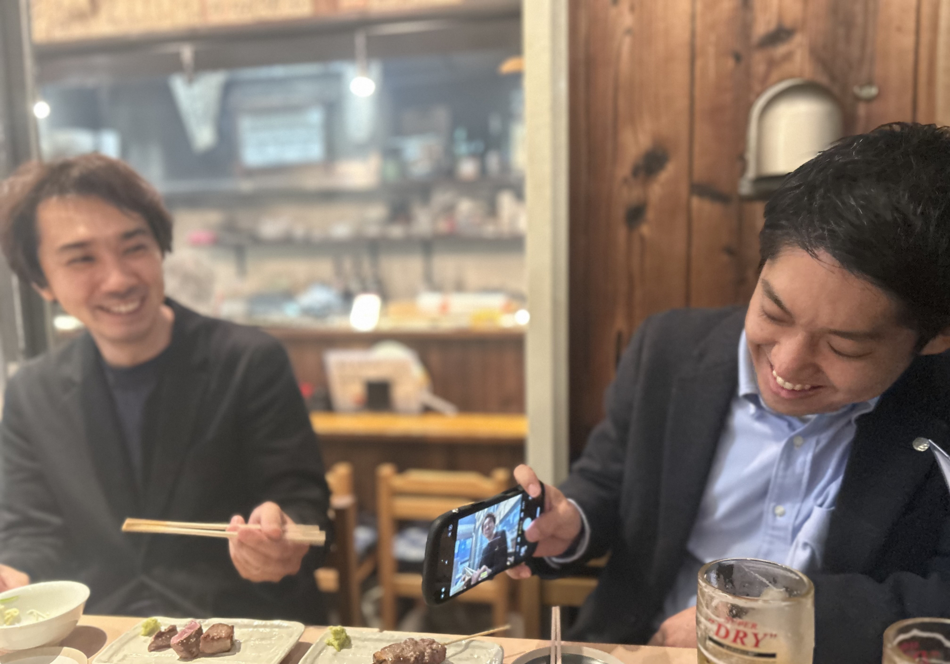 お仕事終わりに立ち寄った焼き鳥屋さんでビール片手にいつもとはちょっと違う“語り合い”の時間が始まりました。