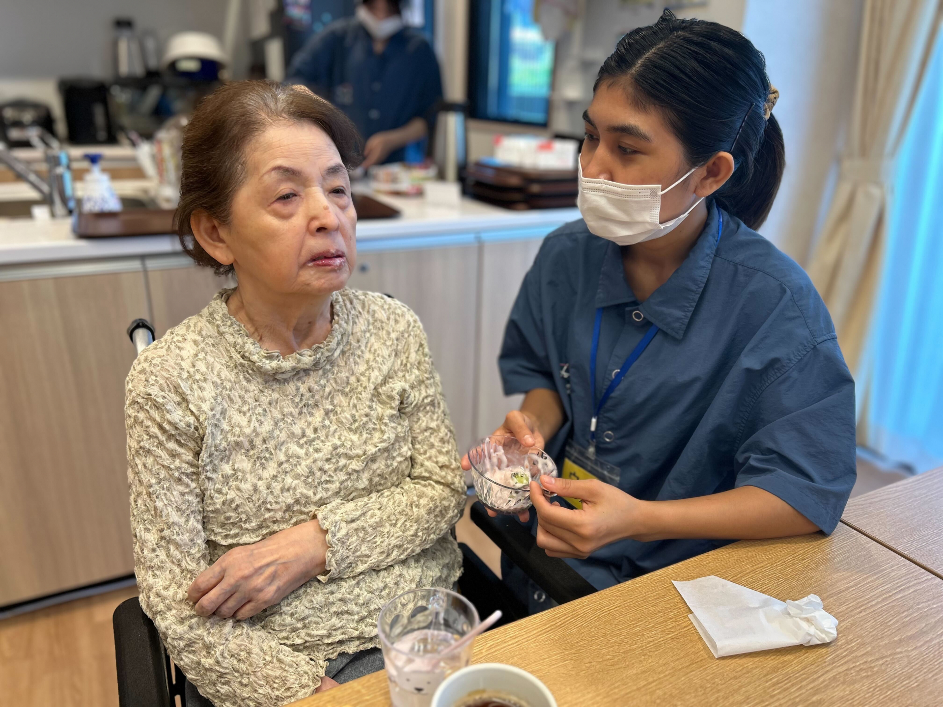 「甘くて美味しいね」「久しぶりに食べたよ」「キウイがいいアクセントになってる!」と、皆さんとても嬉しそうに召し上がっていました。