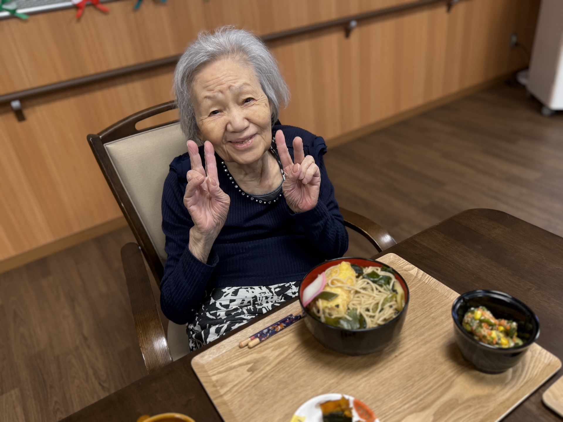 施設では昼食時【年越しそば】を召し上がっていただきました。