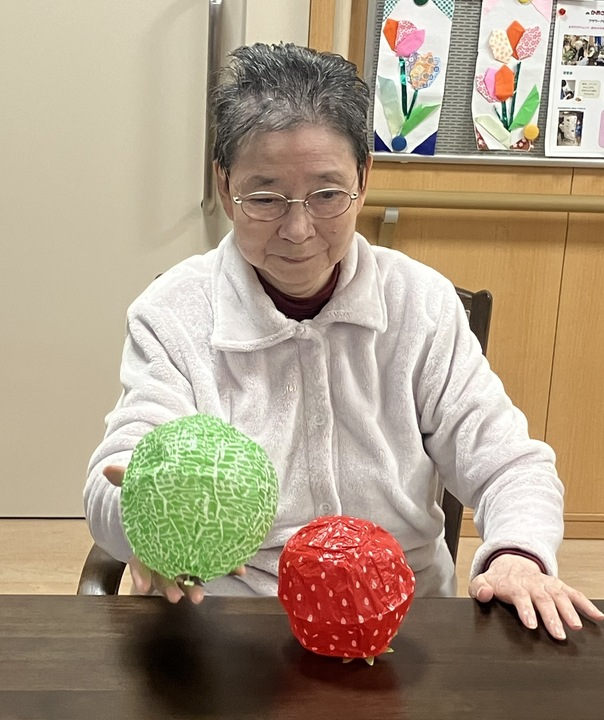 看多機ではよく体を動かす系のレクをやっているのですが、今流行ってることは風船バレーです。