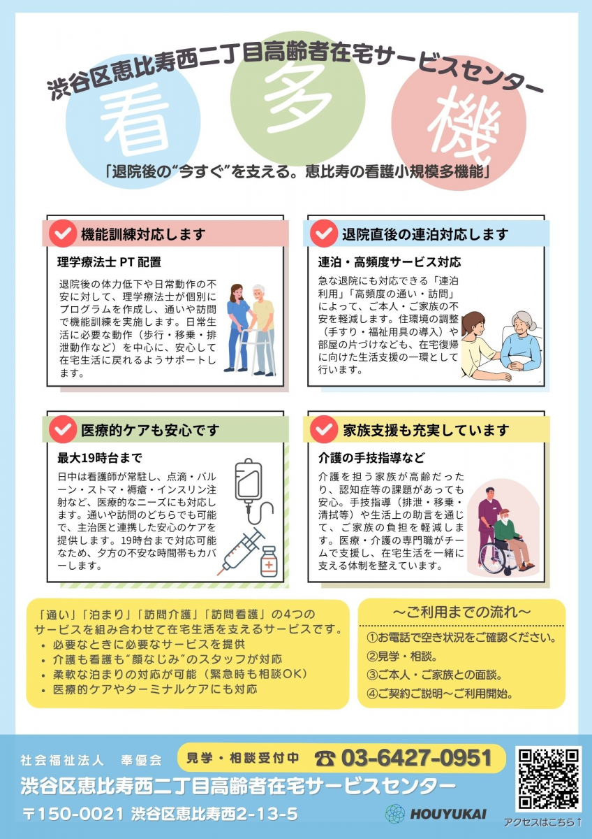 いつも恵比寿西二丁目高齢者在宅サービスセンター(看護小規模多機能型居宅介護)をご利用いただき、誠にありがとうございます。