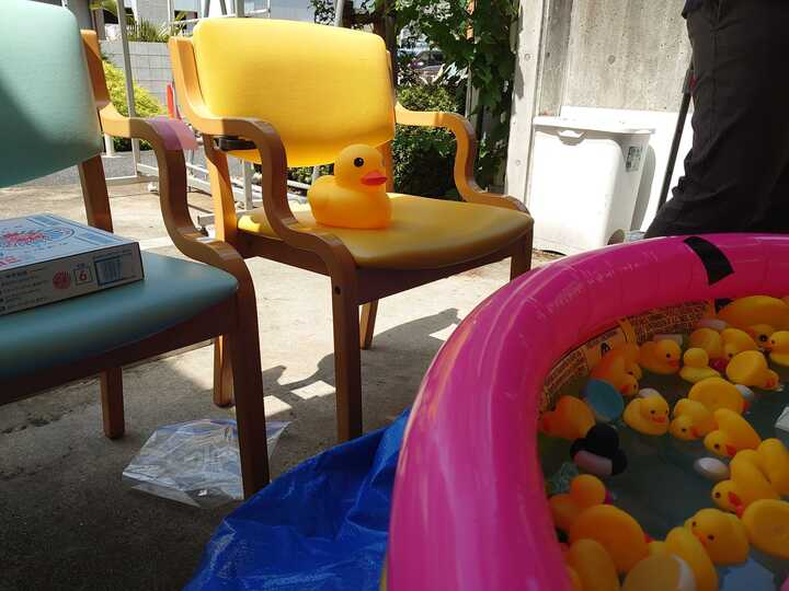アヒルを浮かべて客が来るのを待機しています。