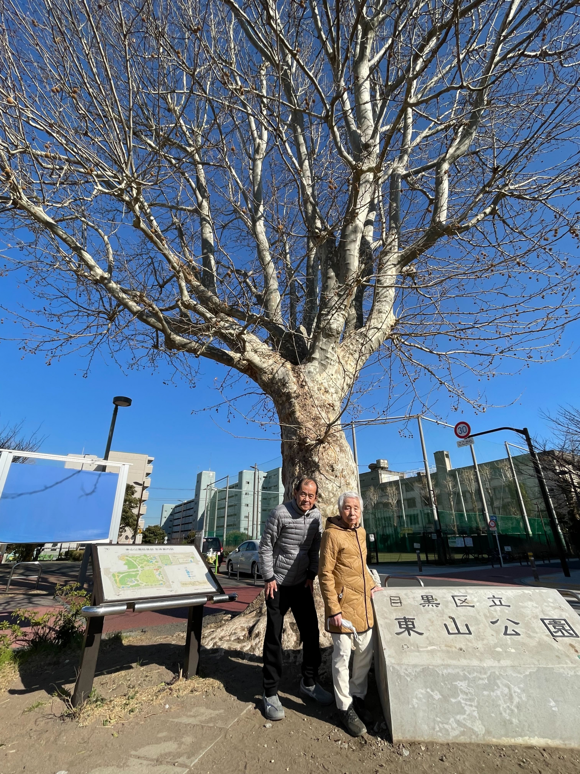 一つ先にある公園まで頑張りました。 大きな木があり写真を撮りたいと!!