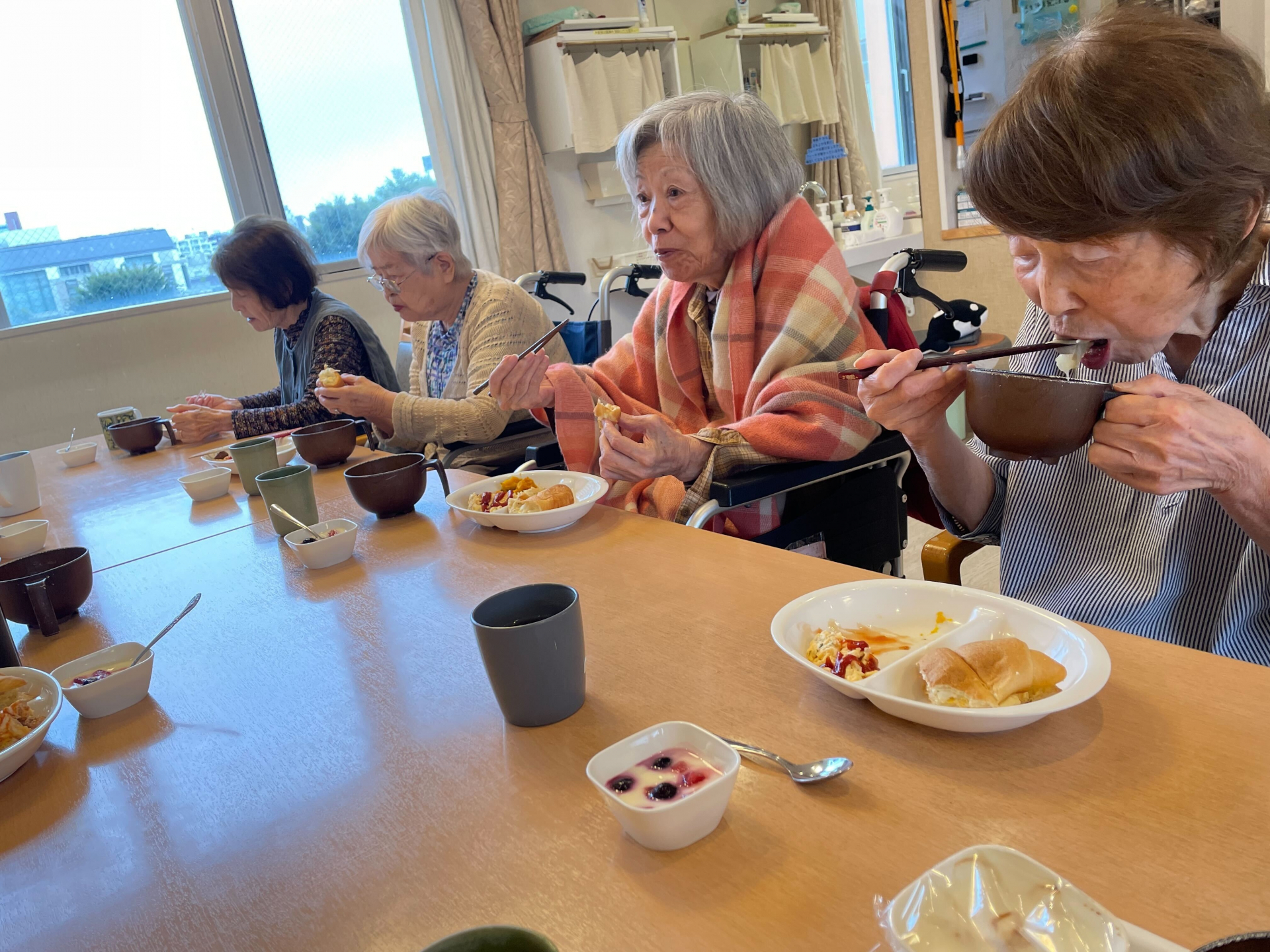 毎朝6時25分から朝の体操を行った後に朝食になります。
