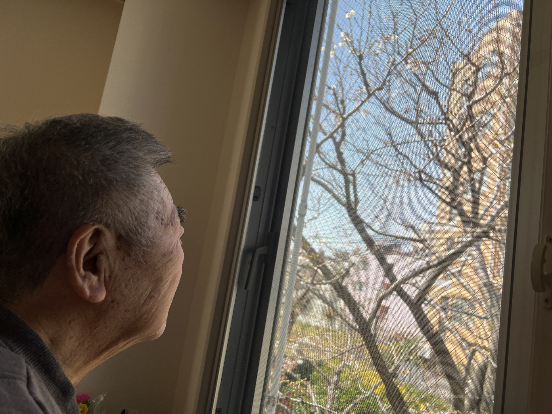 K様の居室から何と桜が見えるじゃありませんか!!