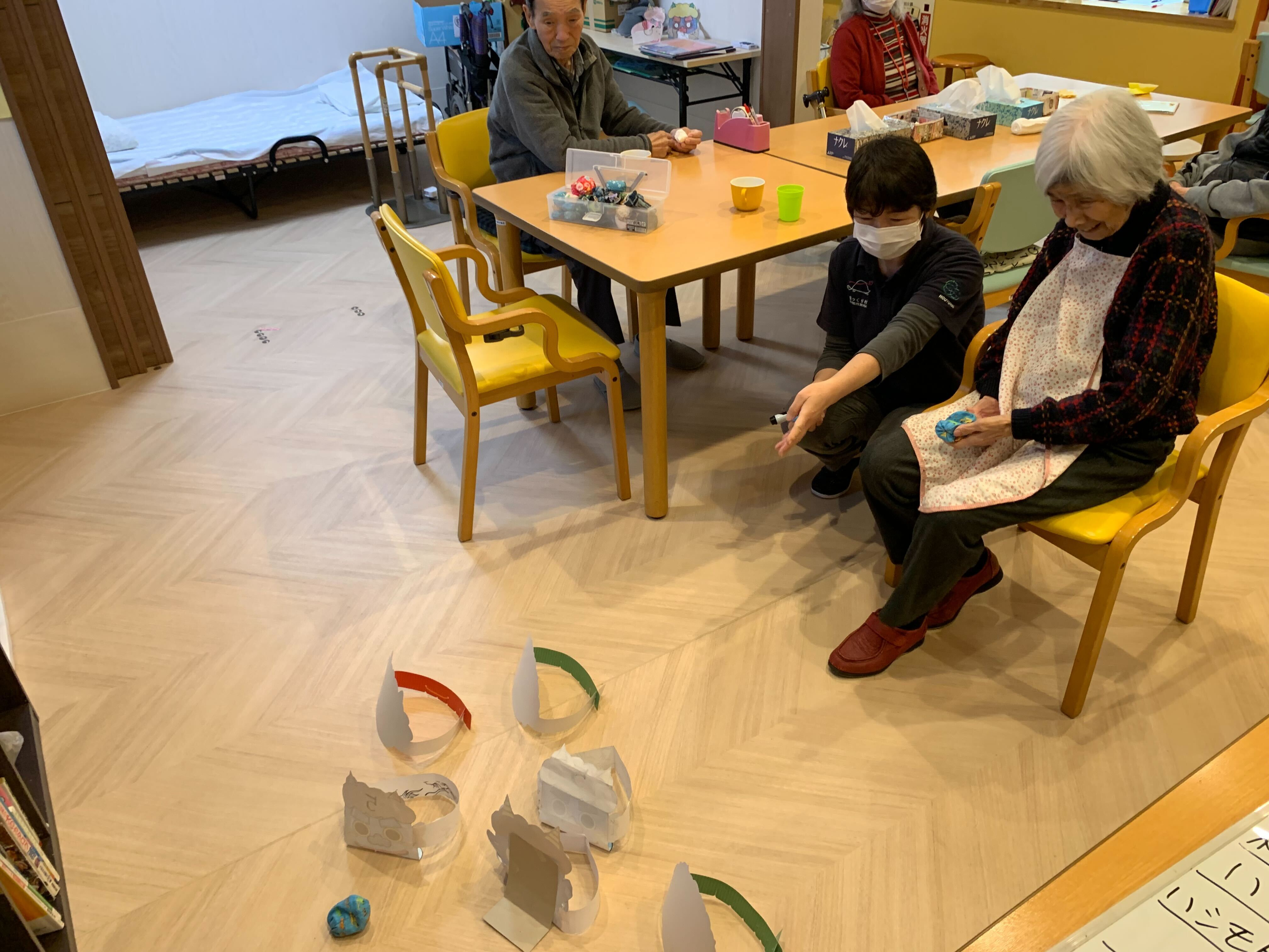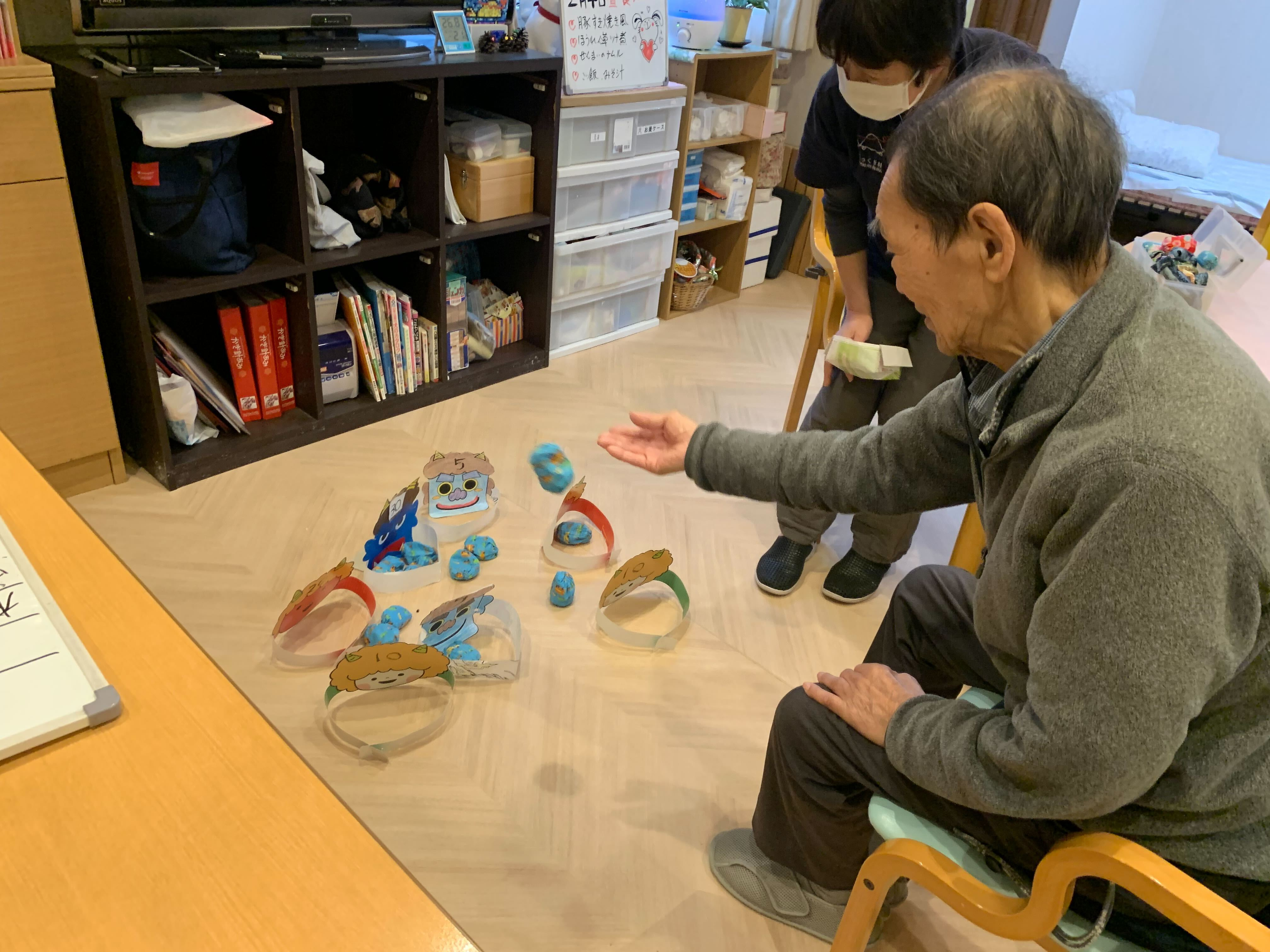 投稿が遅くなりましたが...節分の次の日に、前日に使った鬼のお面を使って皆様とゲームを行いました!!