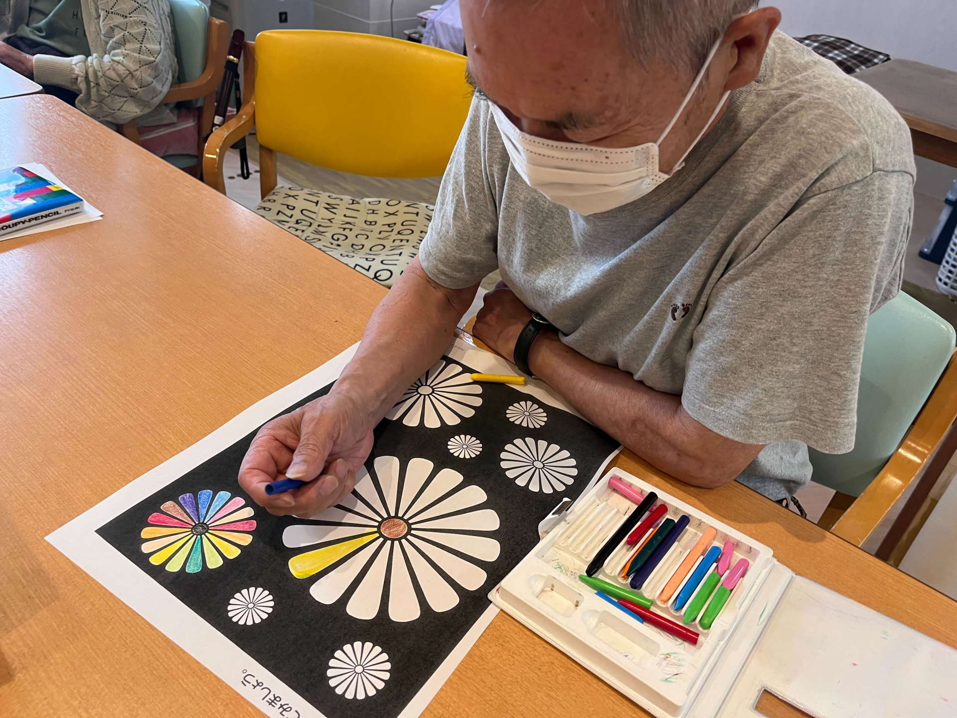 昨日は朝から皆様と塗り絵をして楽しみました♪