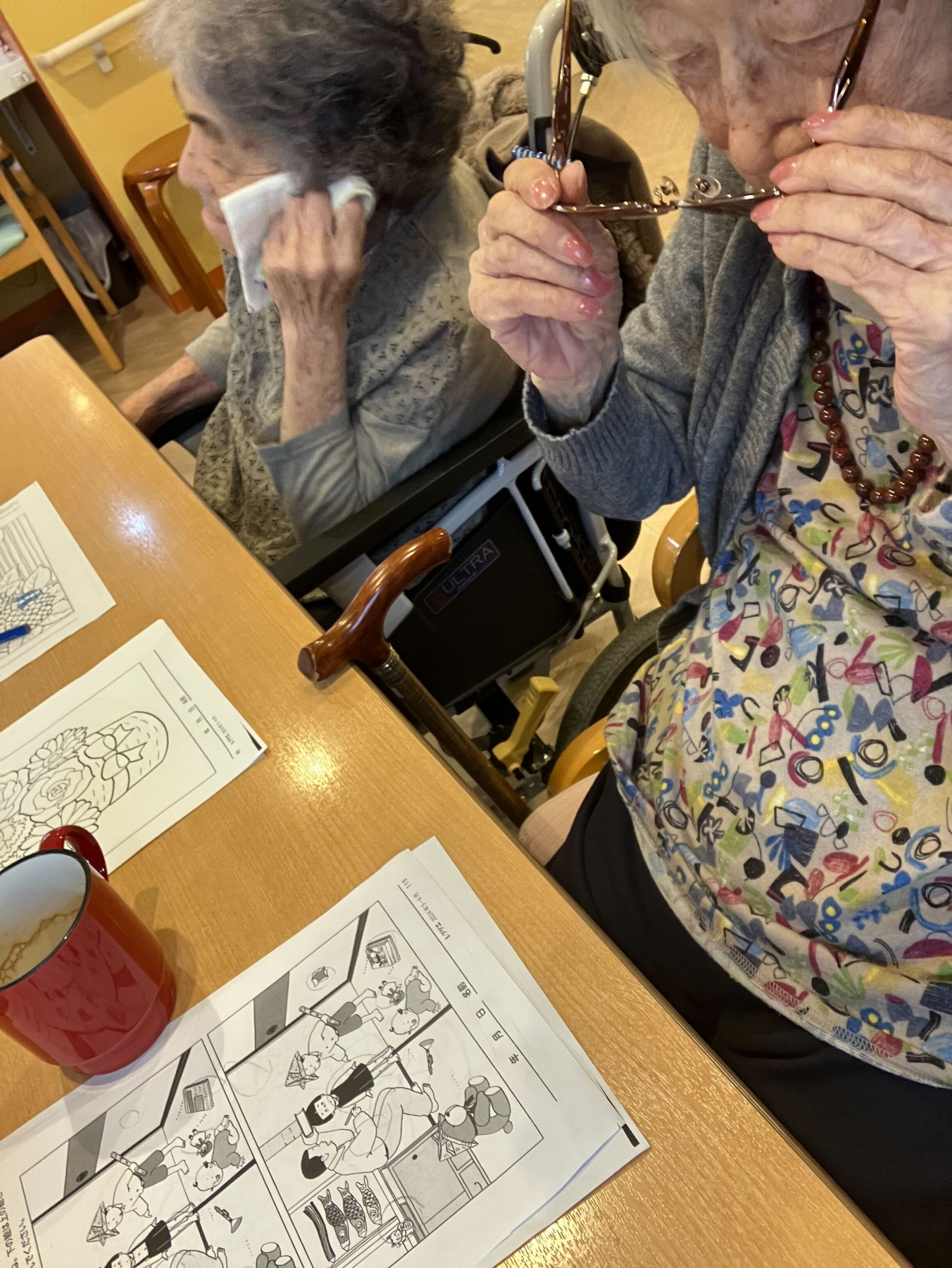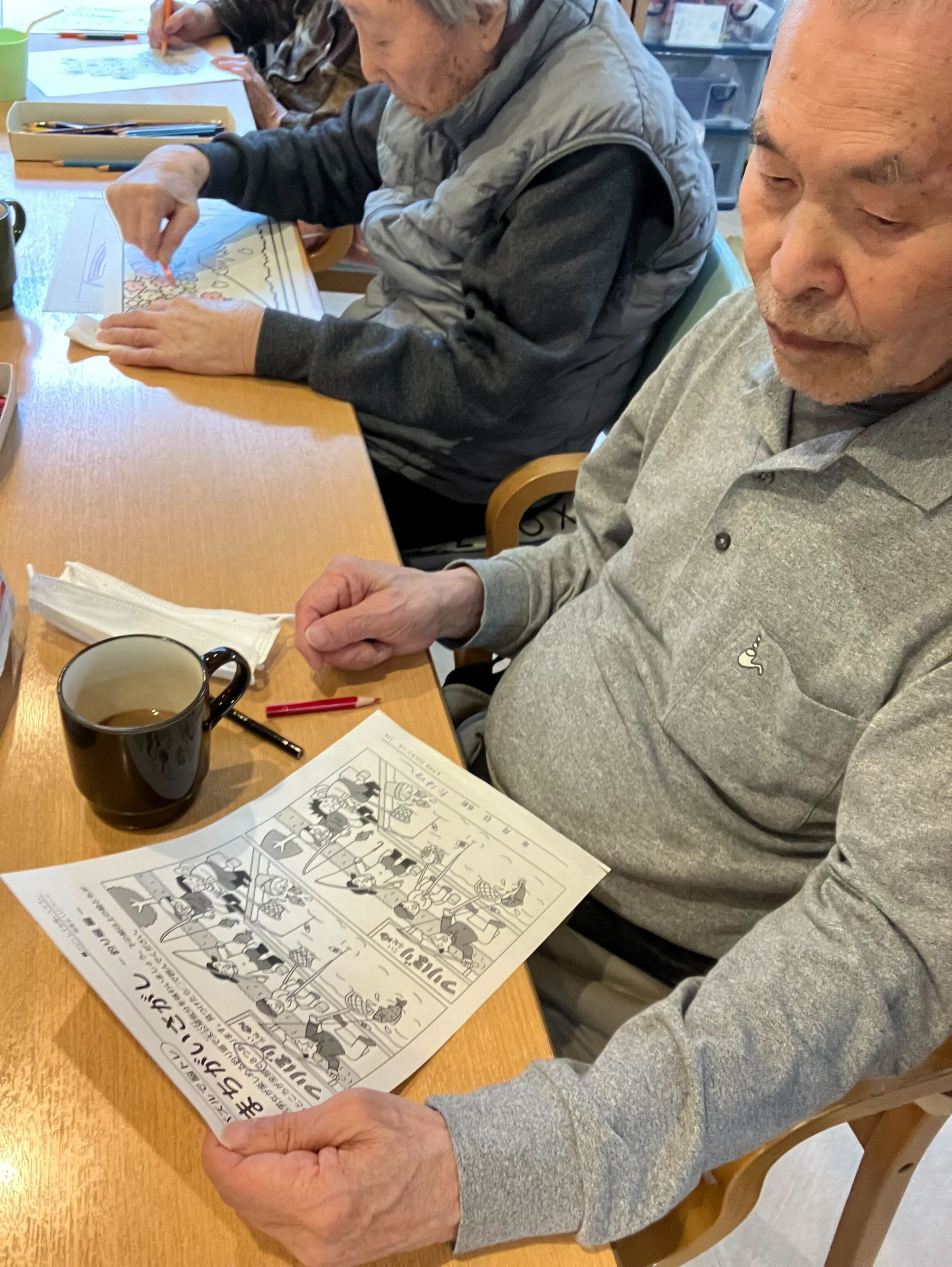 皆様普段は一息休まれたり楽しくお話しされていますが脳トレやぬり絵に取り組むときの表情は一変してとても集中されています!!