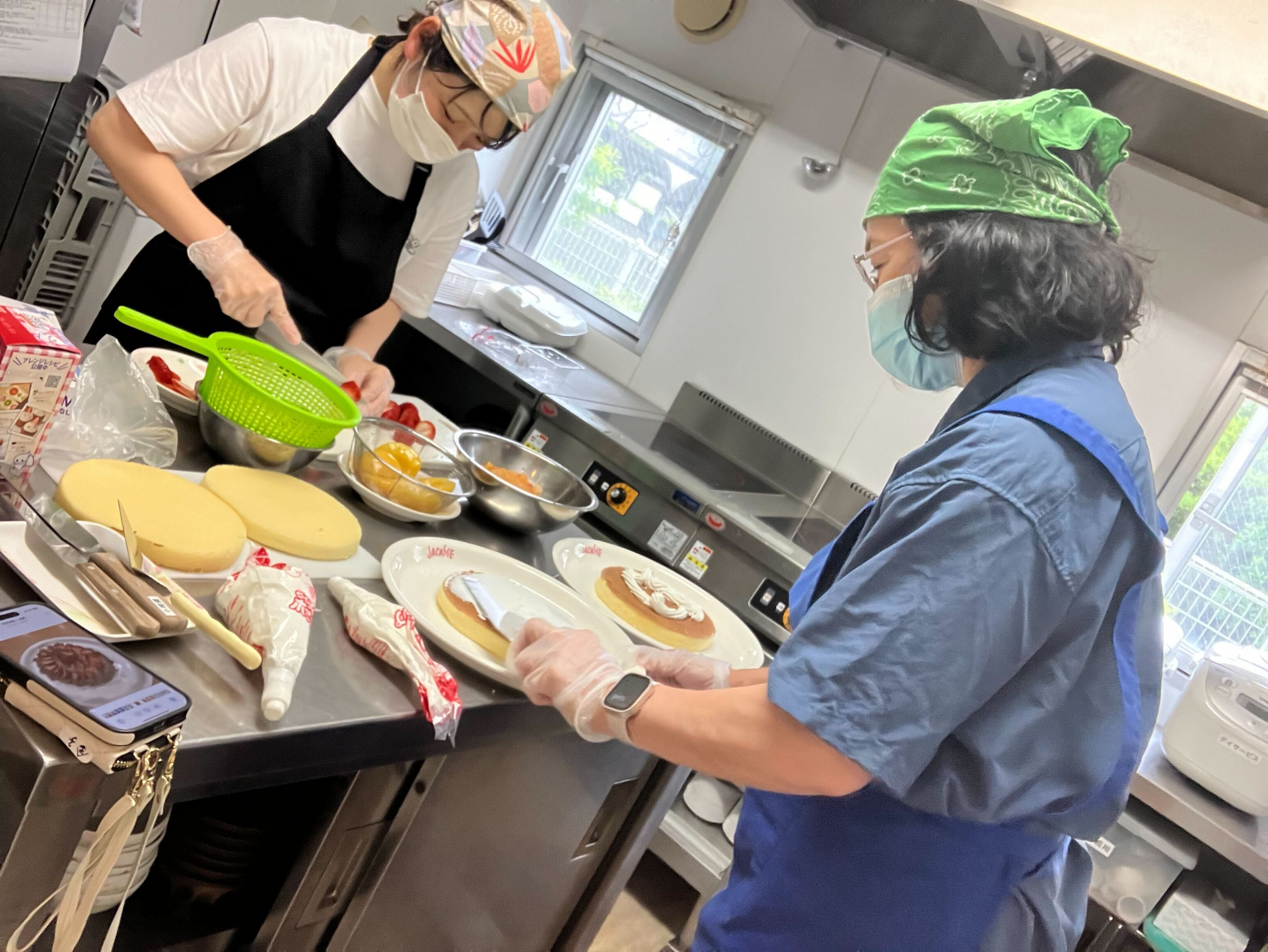 厨房職員と介護職員によるケーキ作りのご様子(*^^)v