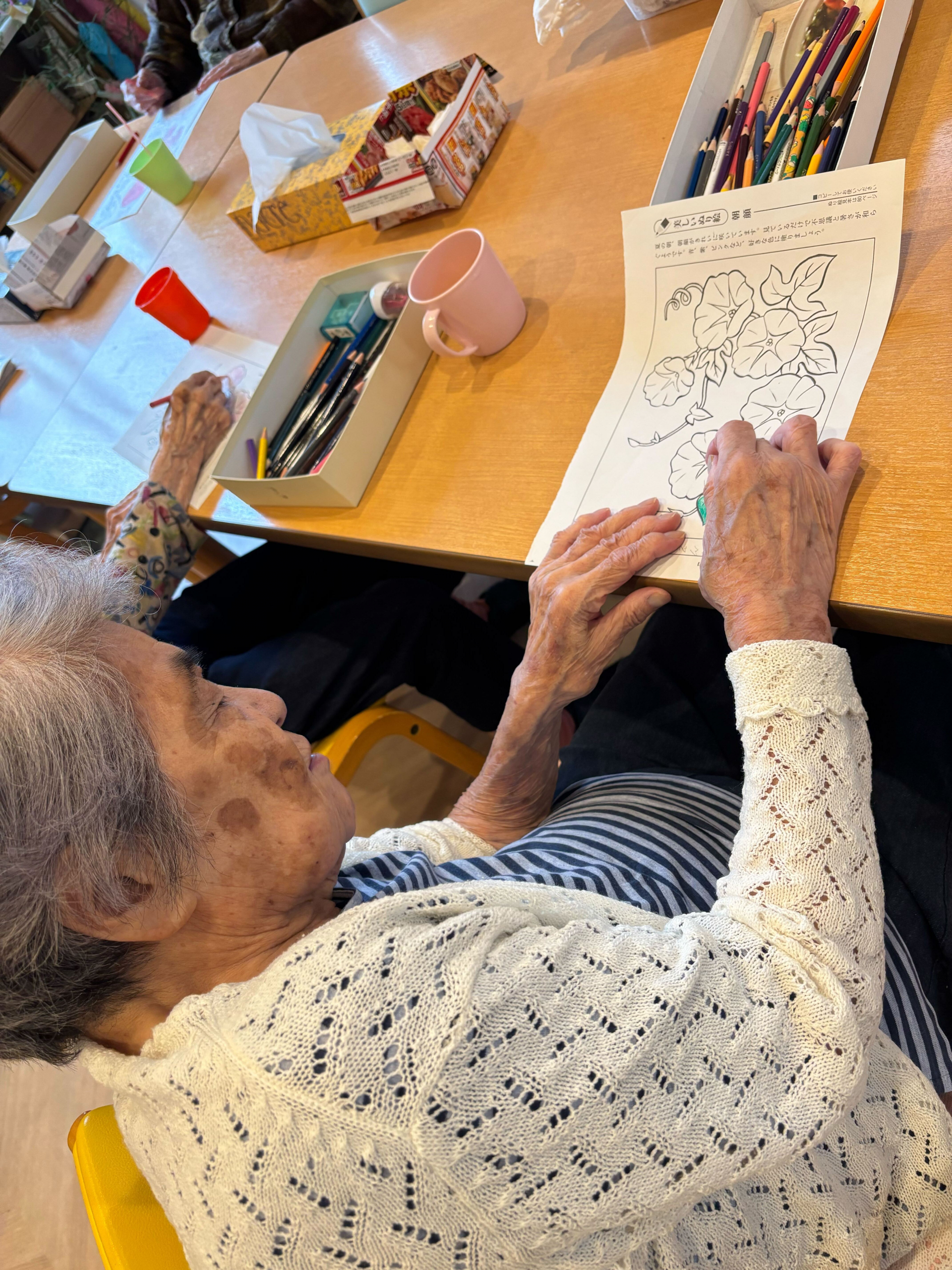 優っくり村池尻では午前はぬり絵や脳トレに率先して皆様取り組まれております!!
