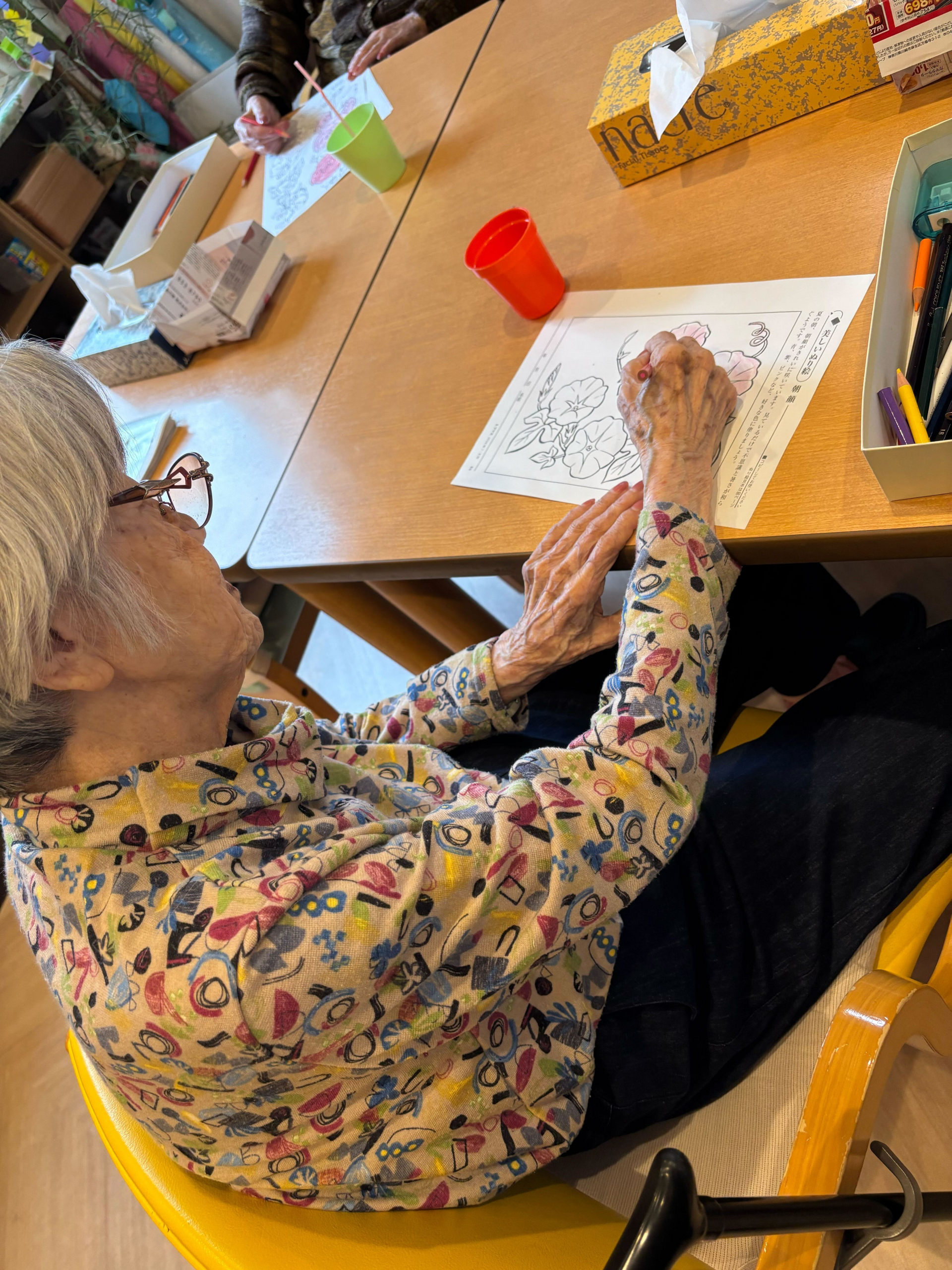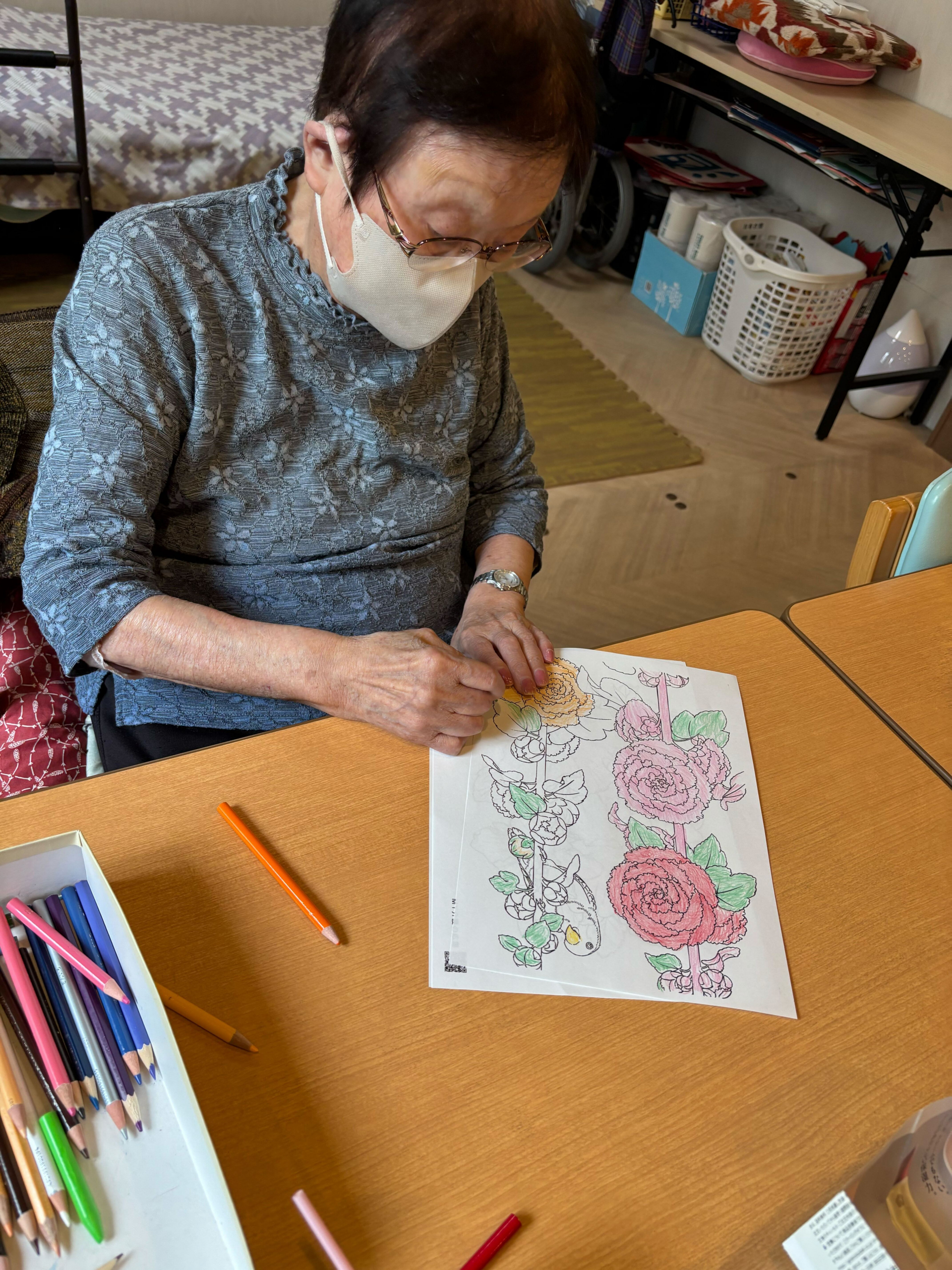 この日もペンを走らせて綺麗なお花を彩られている女性利用者の皆様(^^♪
