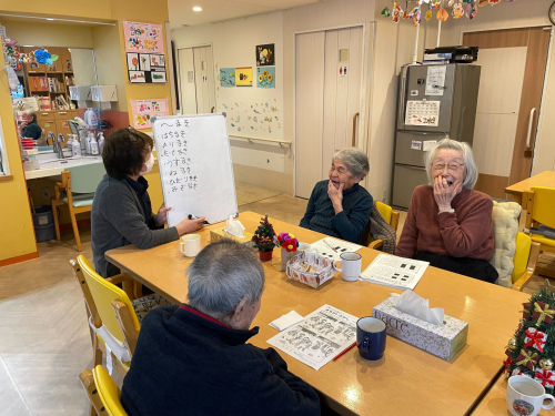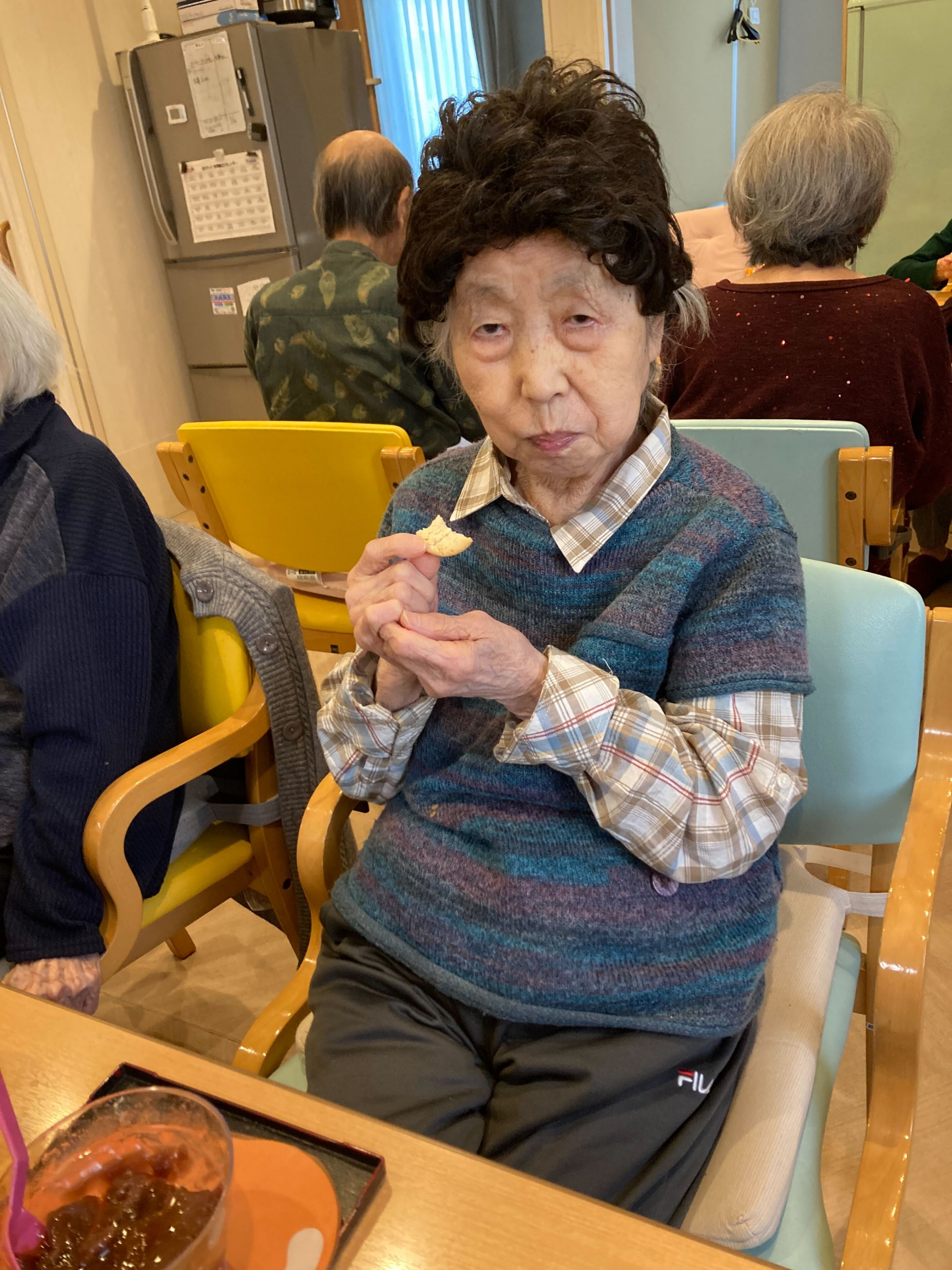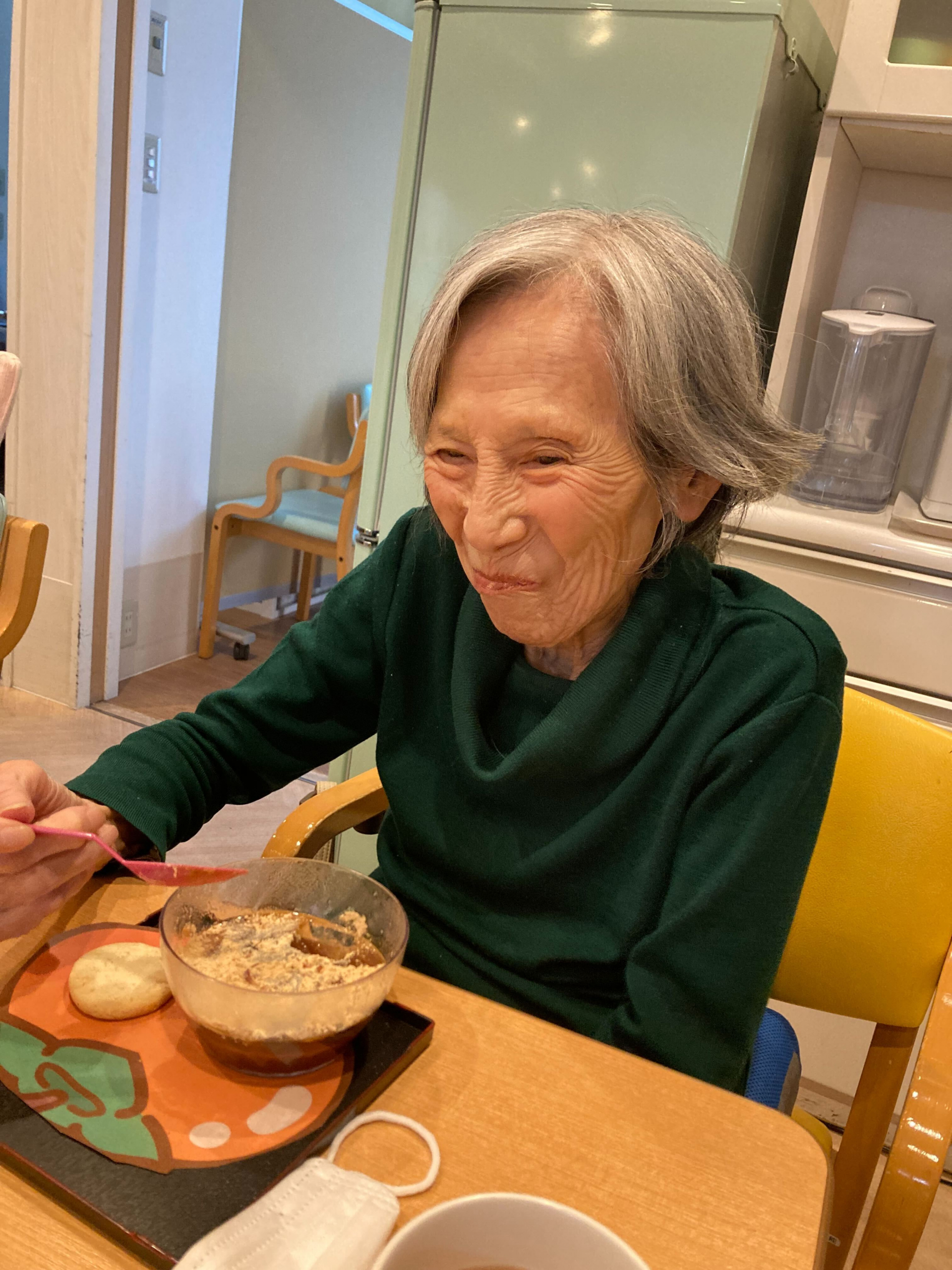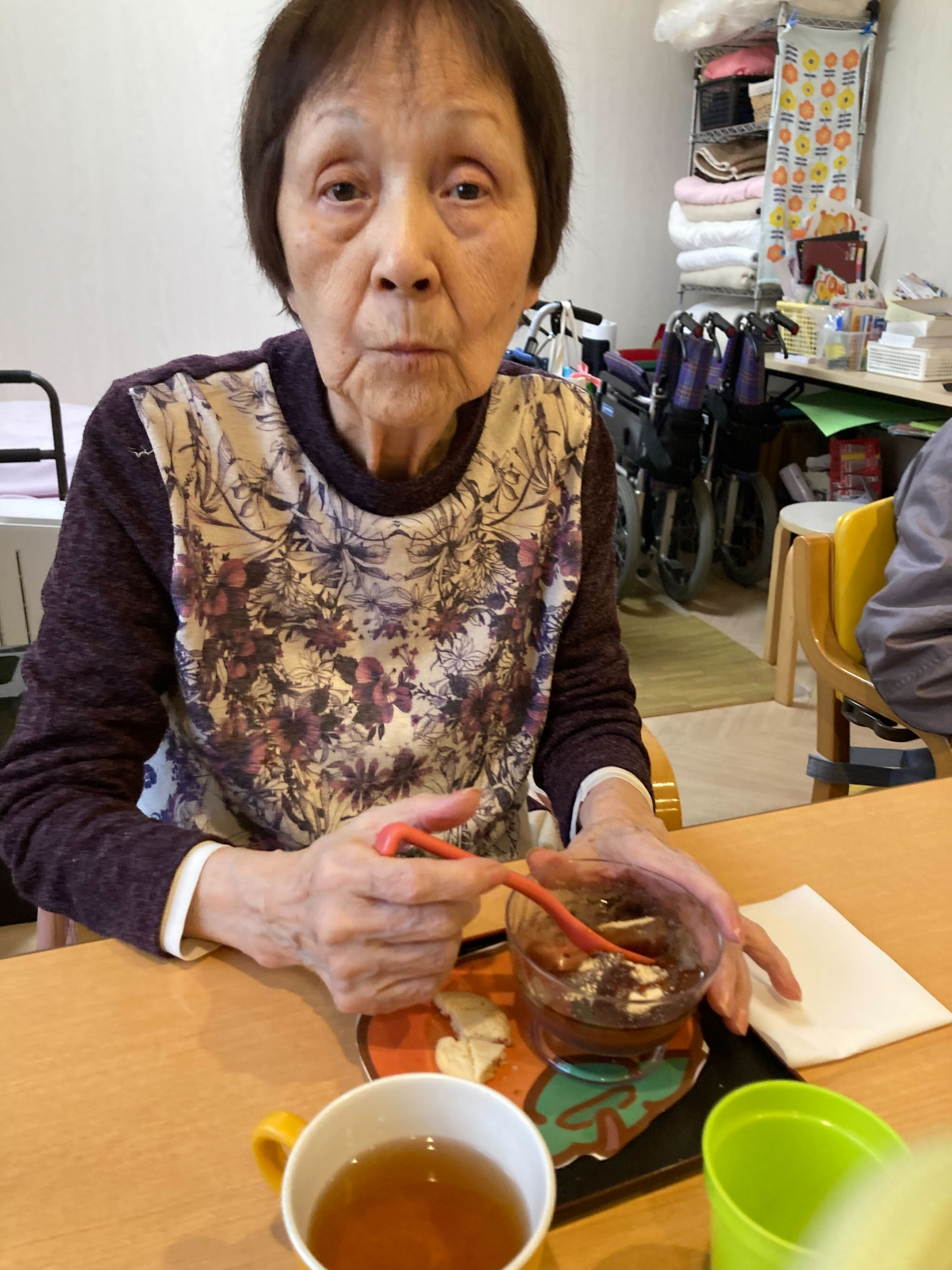 おやつに職員お手製の水羊羹をお出しし、皆様談笑されながら召し上がられております♪