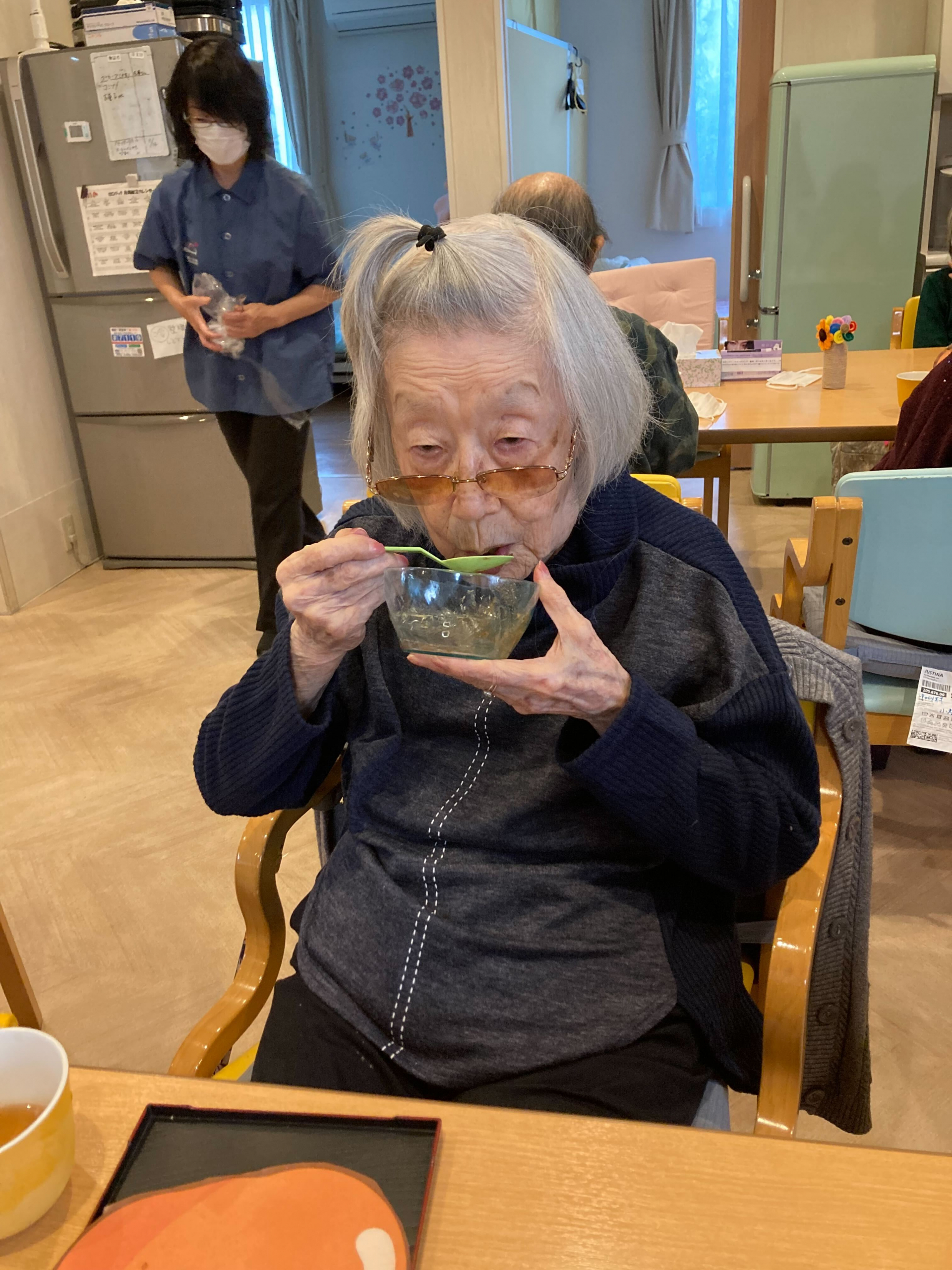 【介護 手作りおやつ】水羊羹を食べながら笑顔溢れる皆様(*^-^*)