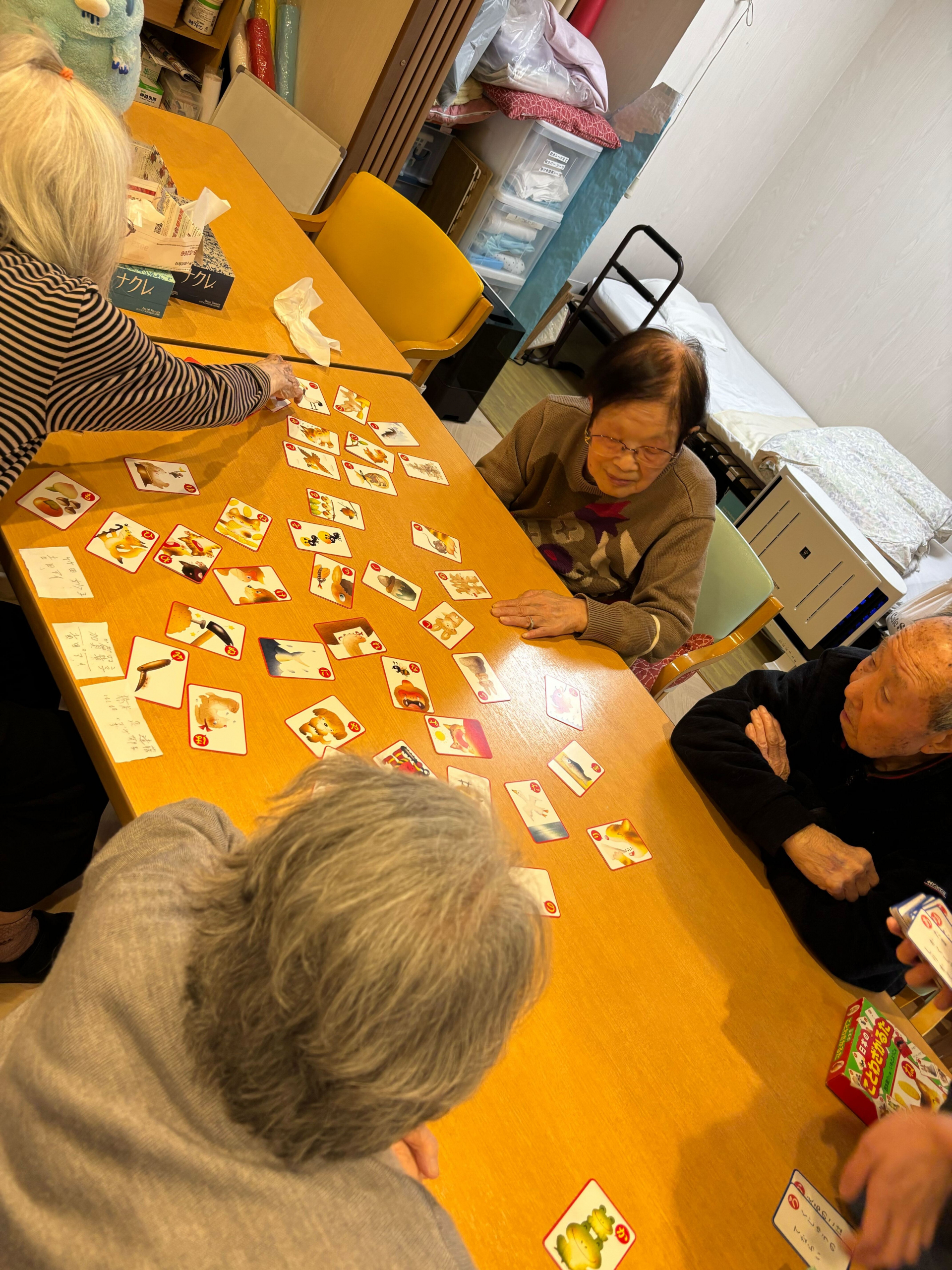 夜の時間に皆さんで一緒にカルタゲームを楽しまれました。
