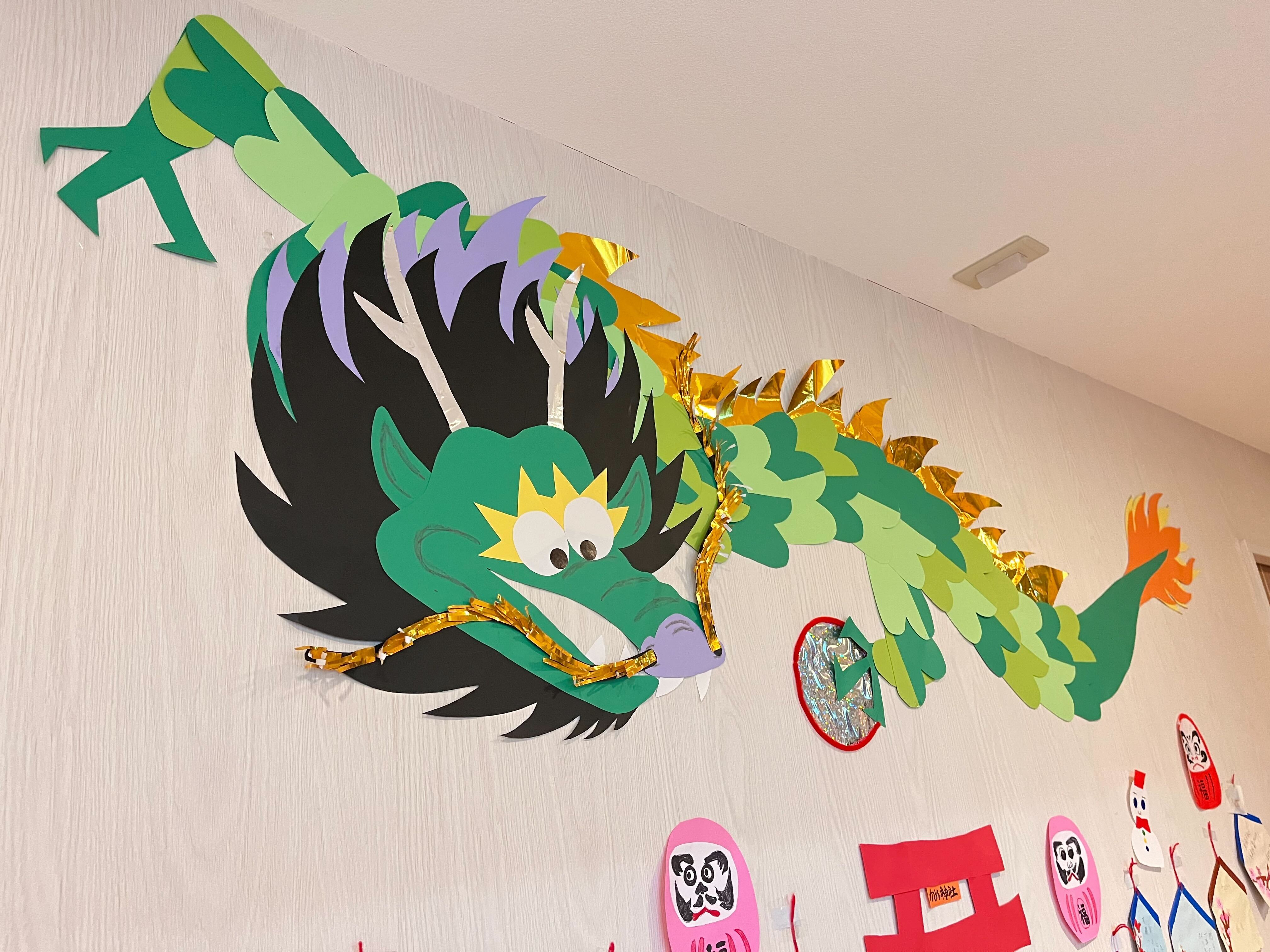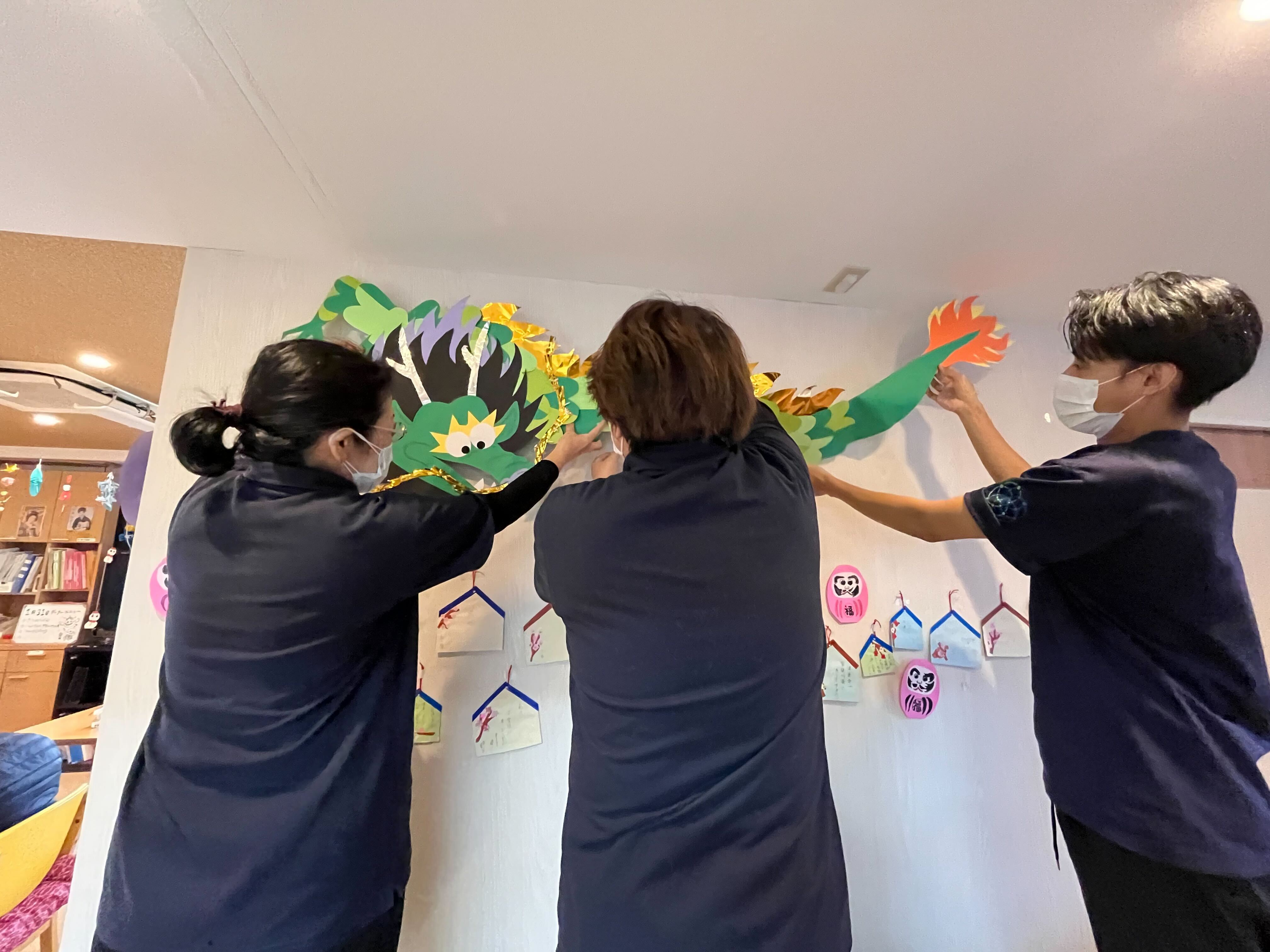 1ヶ月ほどかけて利用者様と職員共同で大きな飾りを作成しました!!