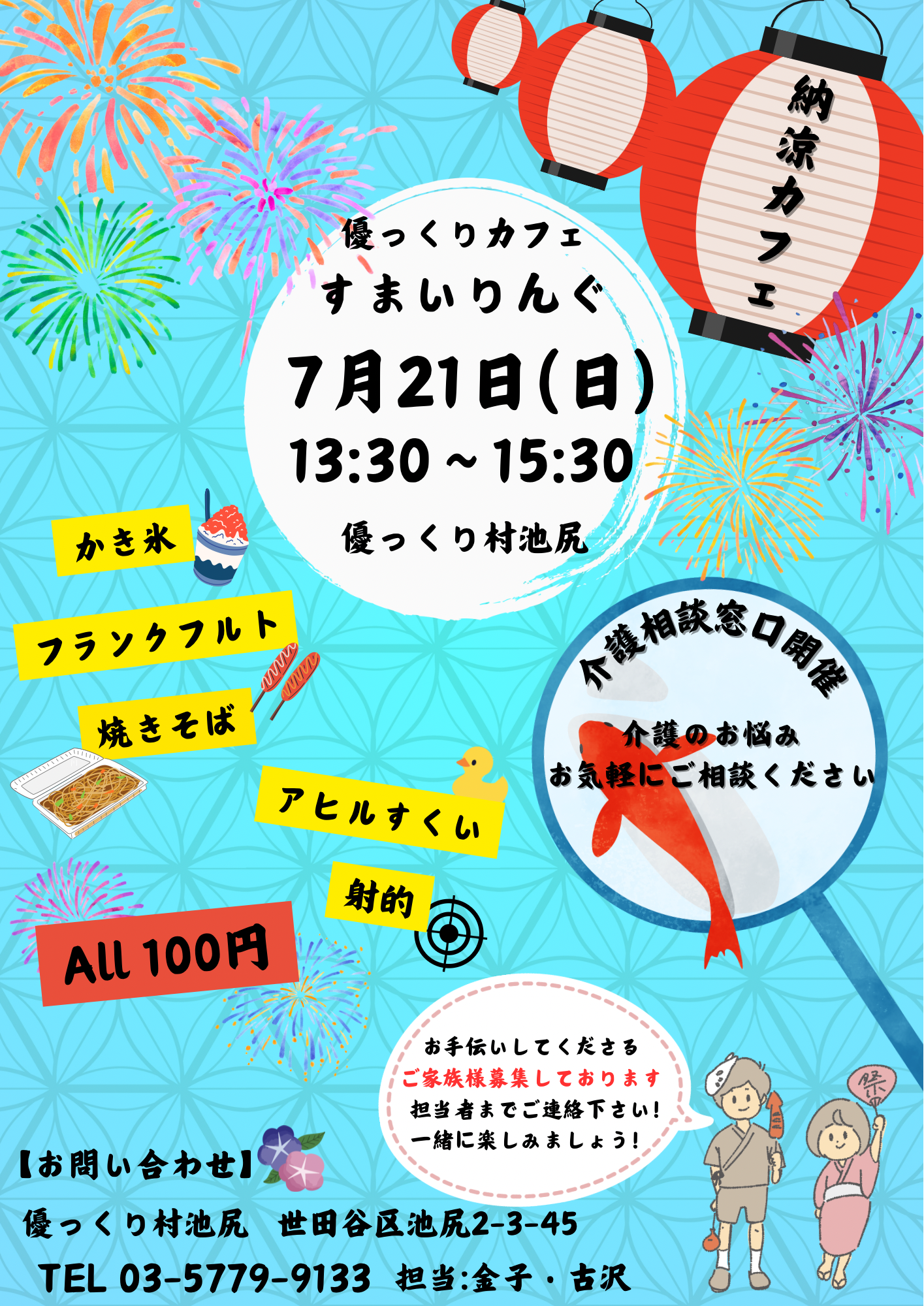 令和6年7月21日(日) 優っくりカフェ 夏の納涼祭 〜介護相談窓口も併設〜