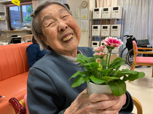 【グループホーム コミュニケーション】かわいい花と満開の笑顔です(*´▽`*)