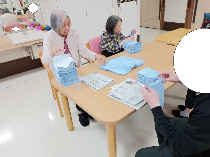 2024.03.29 活動報告 【1F】タオル畳み Tweet シェアする タオル畳みをして下さる皆様です。 職員がタオルの束を持っていると、「やるよ!」「畳みますよ」とすぐにお声を掛けて下さいます。 いつもありがとうございます(^^) 1F 永竹 前の記事 2024.04.01 活動報告 【1F】桜満開! 次の記事 2024.03.29 活動報告 【3F】縫う 一覧へ戻る