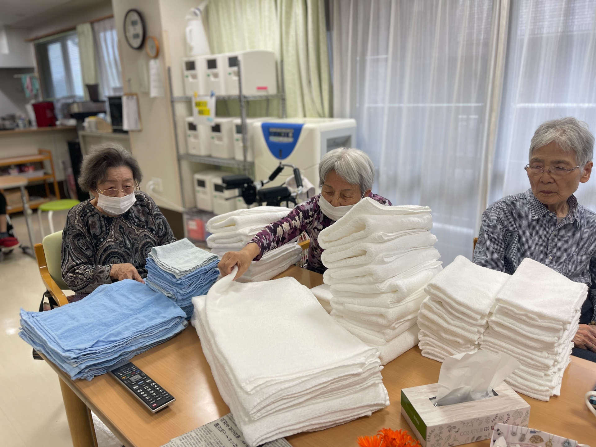 2024.04.12 活動報告 一緒にタオルを畳む ♡♡ Tweet シェアする お風呂場のタオルがなくなったので、皆でタオルを畳んで頂きました。 3人でやると早く終われますね~ 手伝ってくれてありがとうございます。 エレン 前の記事 2024.04.12 活動報告 エレベーターの鏡での写真 次の記事 2024.04.12 活動報告 一緒に昼ご飯の準備をする。 一覧へ戻る