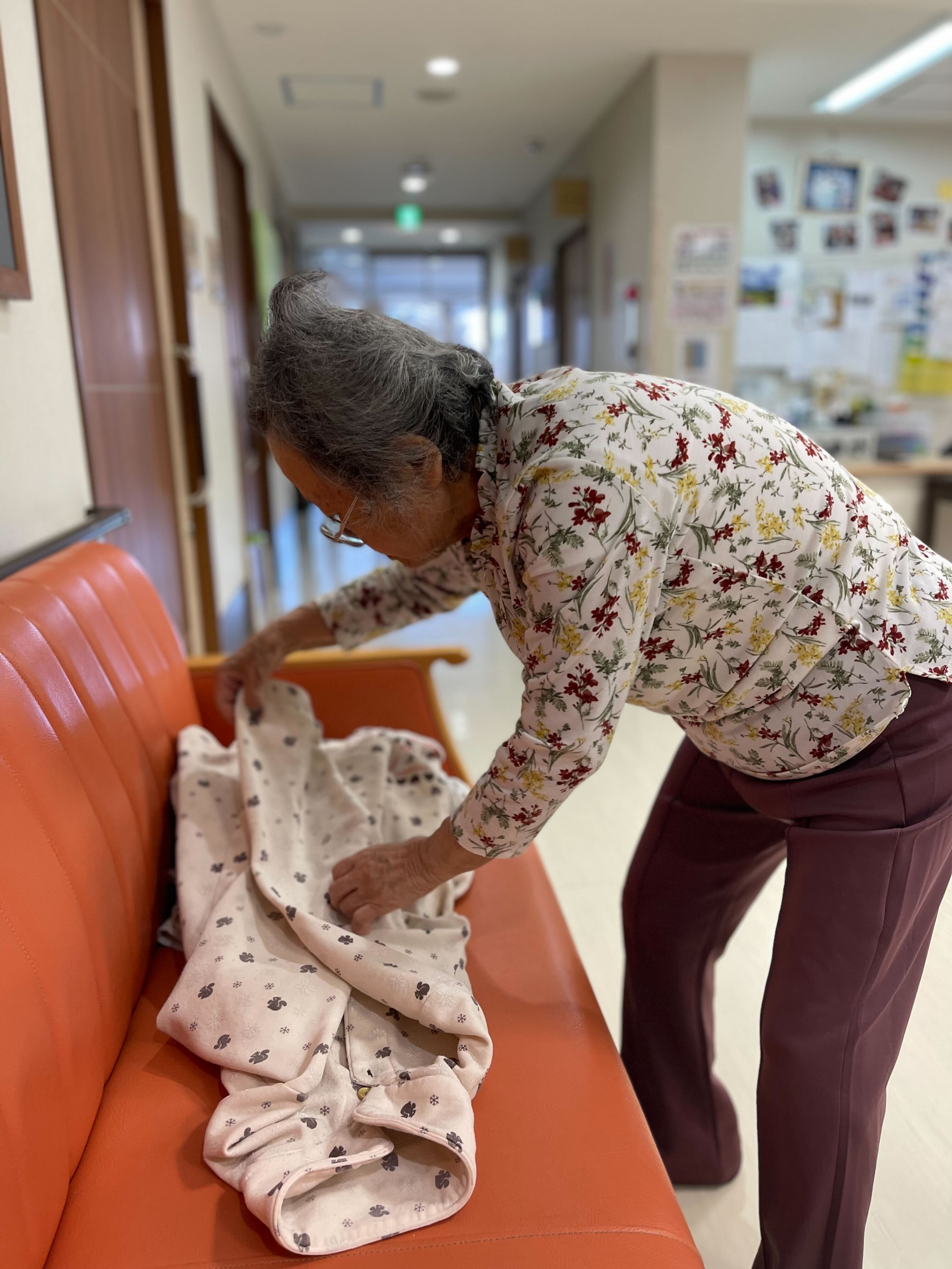 職員が洗濯物を取った時に「これ、乾いた?いいよ、畳むから」と仰ってくれた*様です。