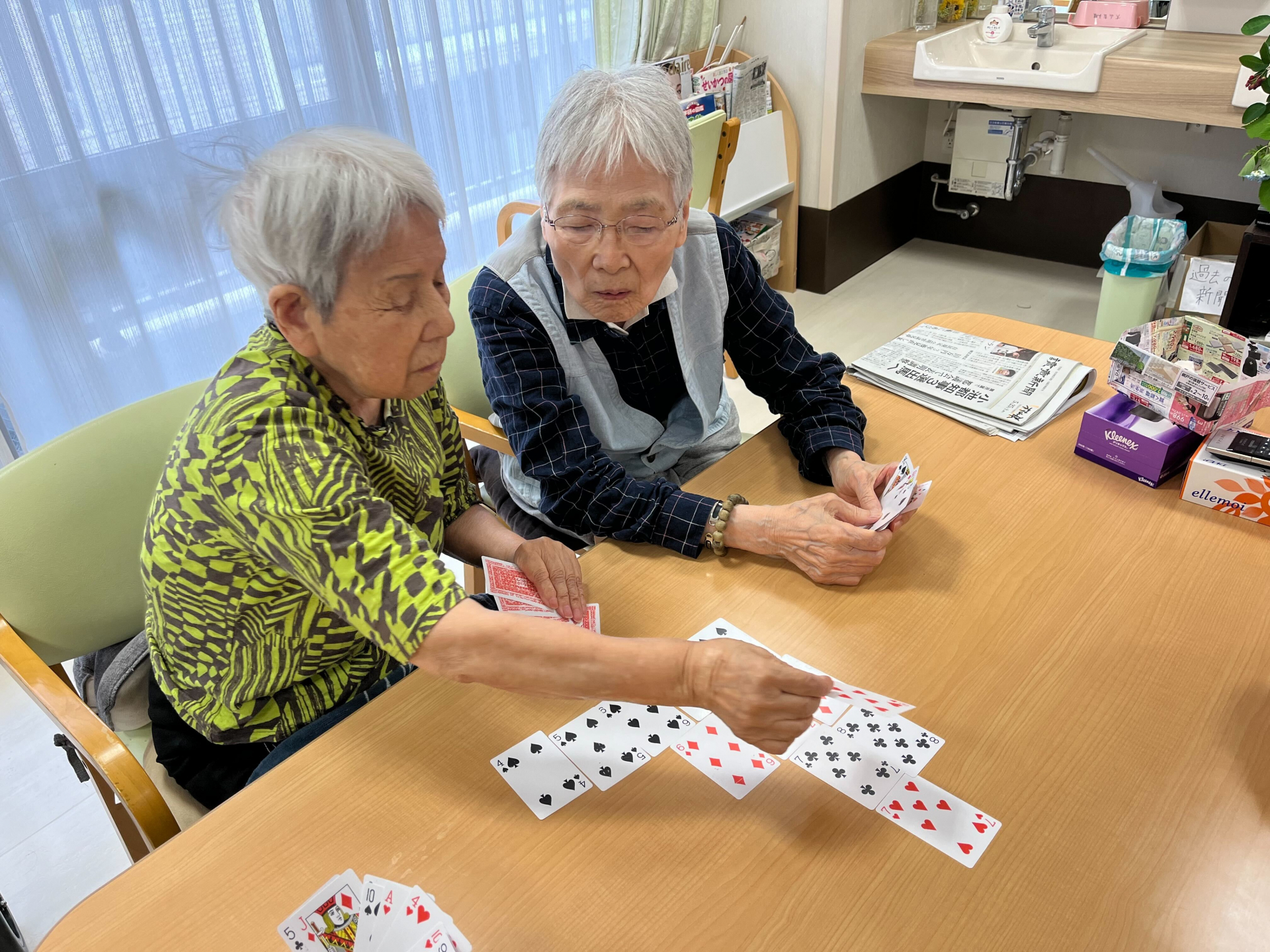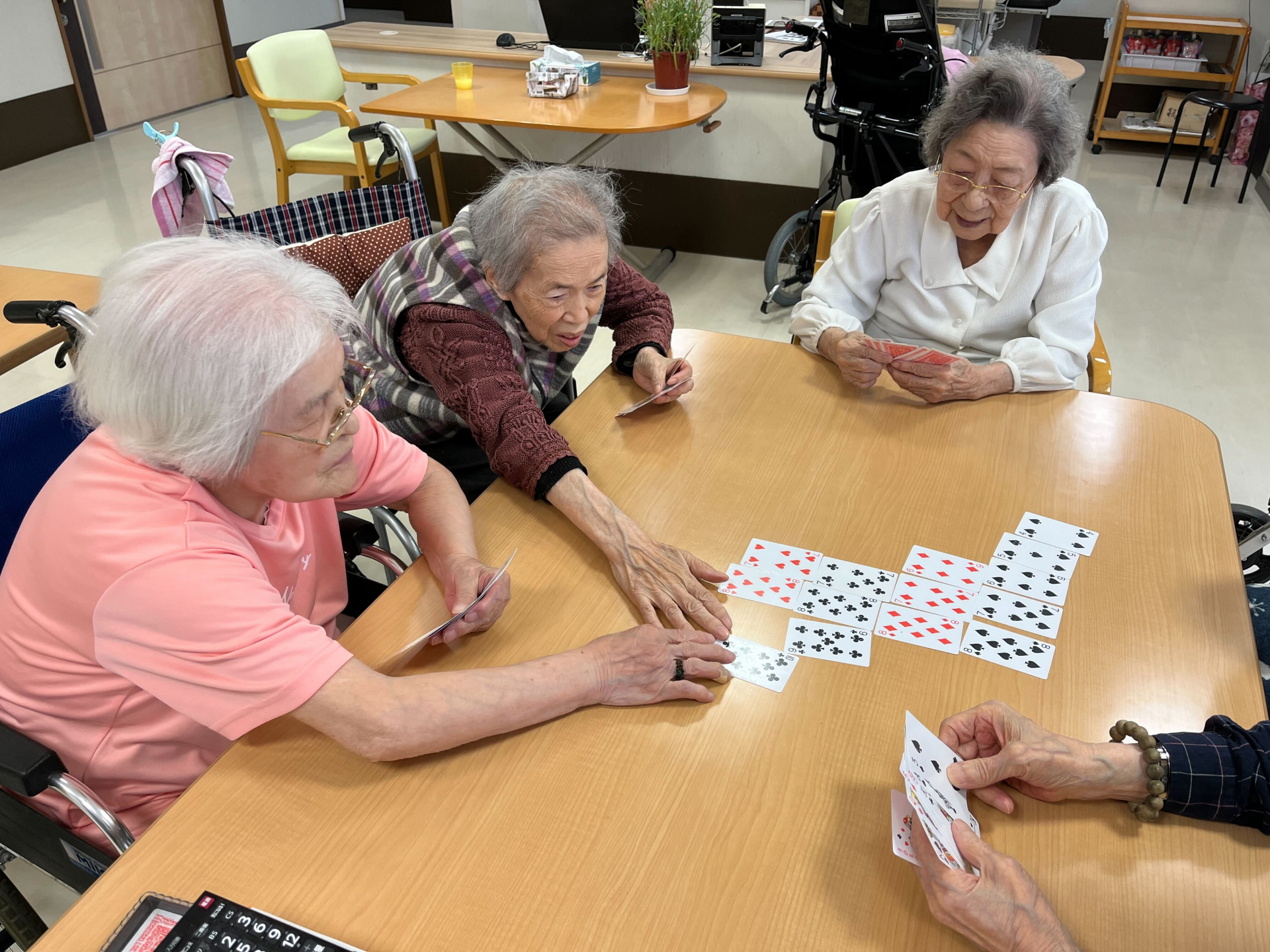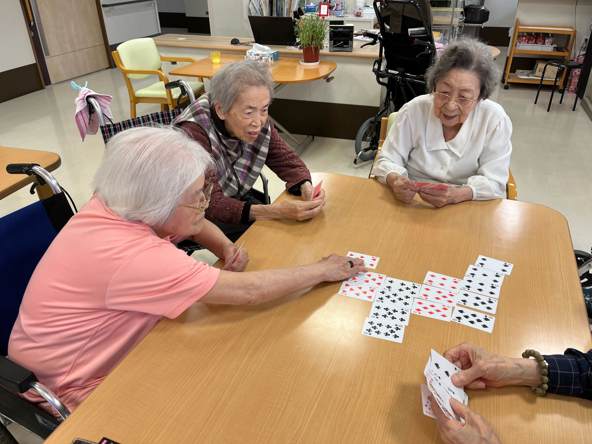2024.05.30 活動報告 【3F】ババ抜きのゲーム Tweet シェアする 本日、レクリエーションの時間もできました! 今回は七並べのゲームをやりました。 皆の笑い声でとても賑やかになってます~ (≧▽≦) またやりましょうね~ エレン 前の記事 2024.05.30 活動報告 【3F】食器を洗って頂く 次の記事 2024.05.29 活動報告 【3F】お散歩しつつ、外の空気を吸います~ 一覧へ戻る