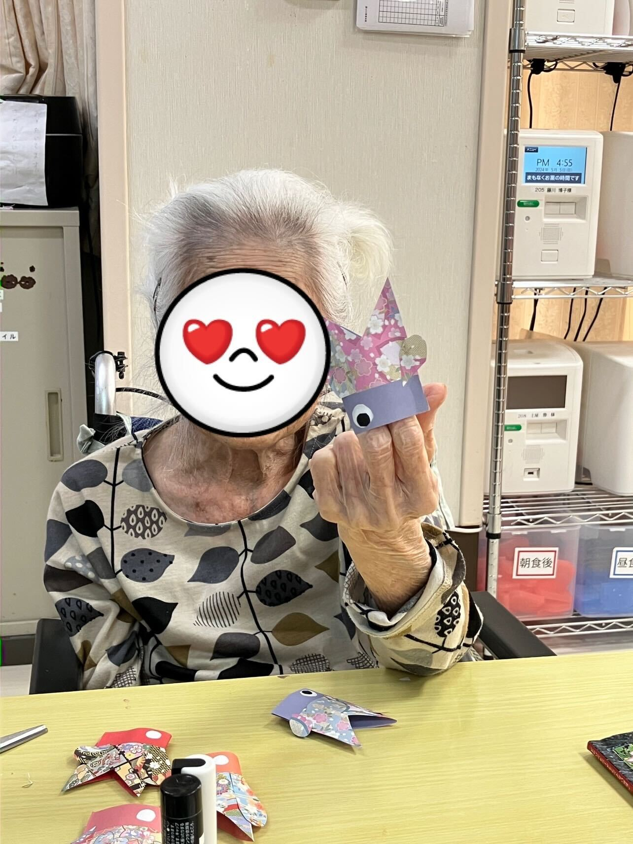 2024.05.05 活動報告 【2F】鯉のぼり Tweet シェアする 今月にこい祭りがあるので、折り紙から鯉のぼりを作りました。 皆さんすごく魅力的ですね~ とても綺麗に出来ました。楽しかったですね~ エレン 前の記事 2024.05.05 活動報告 【3F】麻雀大会を開始 (≧▽≦) 次の記事 2024.05.05 活動報告 【3F】公園まで散歩しました 一覧へ戻る
