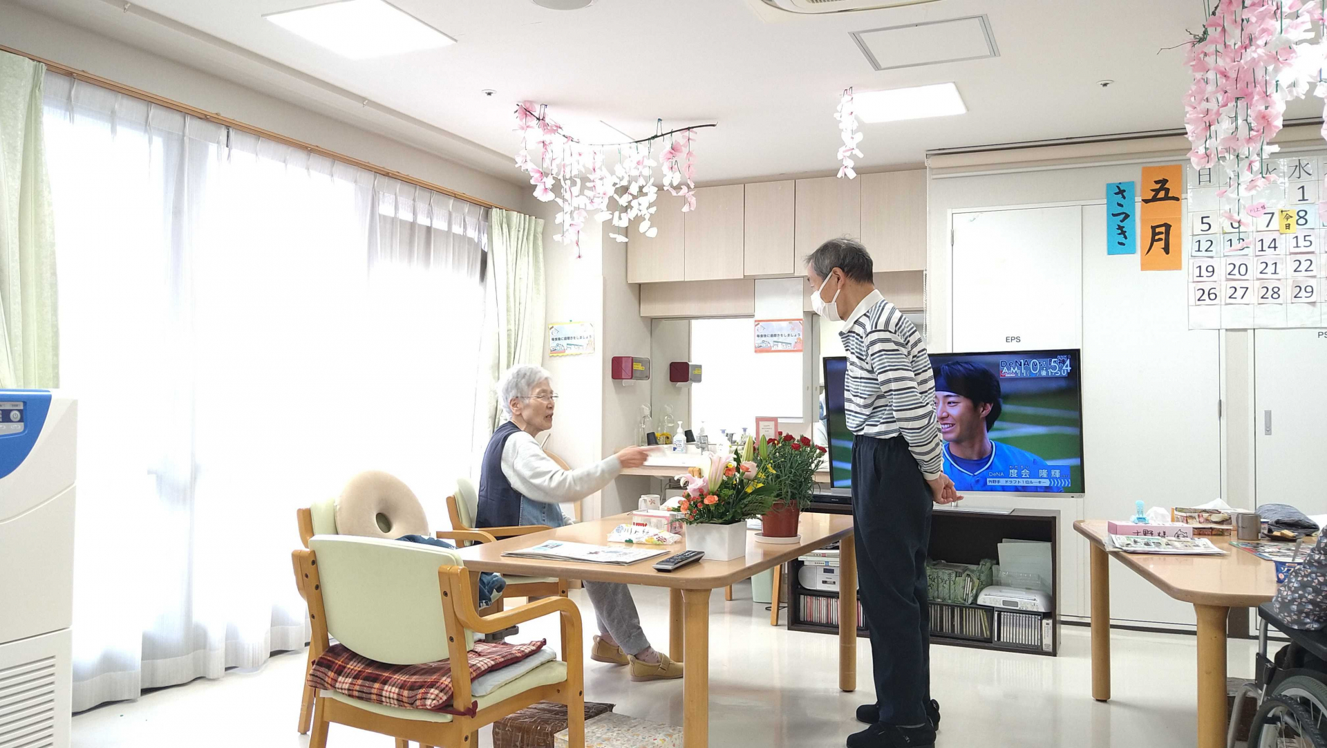 2024.05.08 活動報告 【3F】お喋り時間 Tweet シェアする お喋り時間の様子です。 テレビのニュースのことを話しています。 楽しそうな様子に写真を撮らせてもらいます。 3階 エレン 前の記事 2024.05.08 活動報告 【3F】今日もPUZZLEをやりました。 次の記事 2024.05.07 活動報告 【3F】お誕生日のお花! 一覧へ戻る