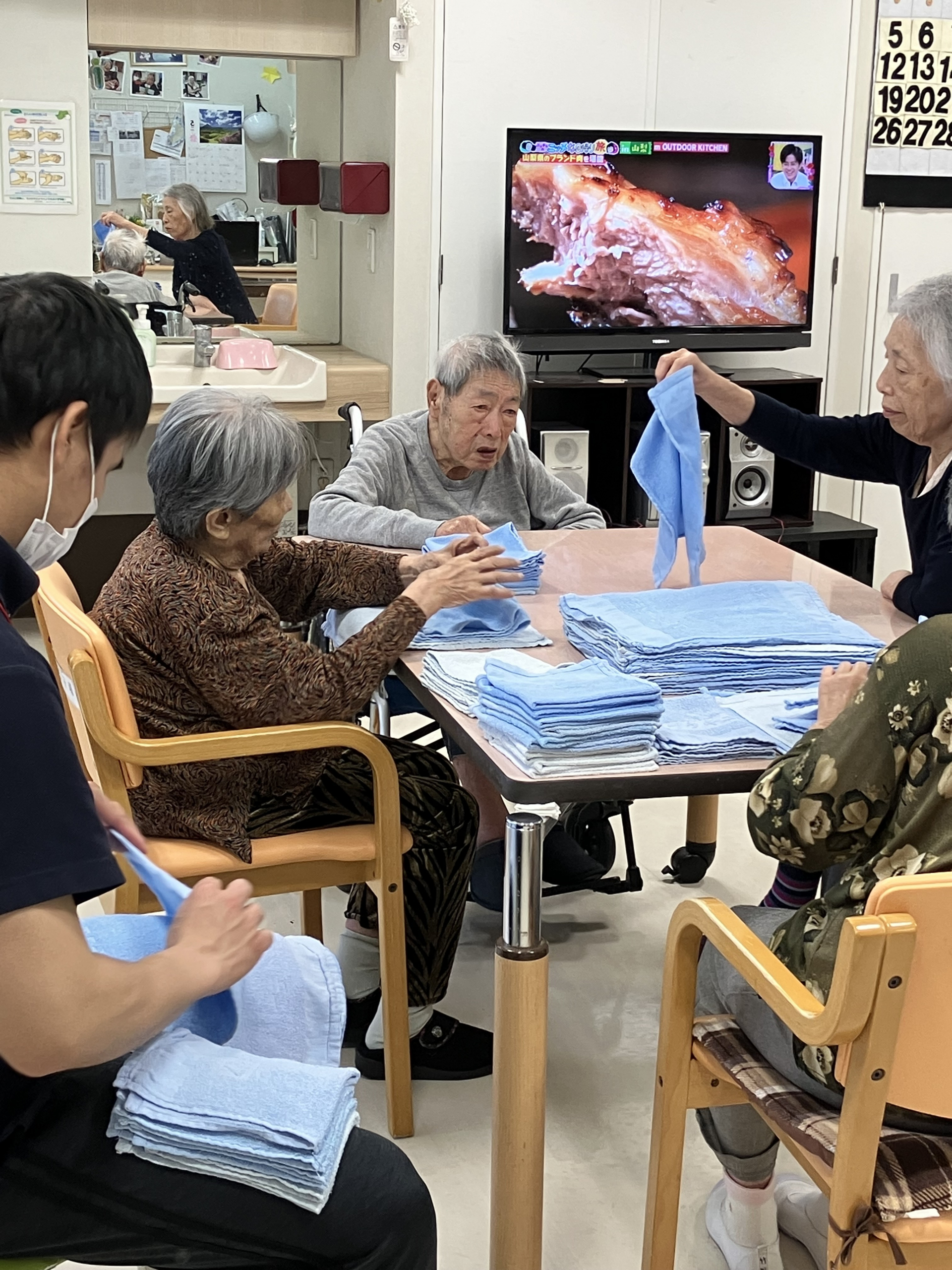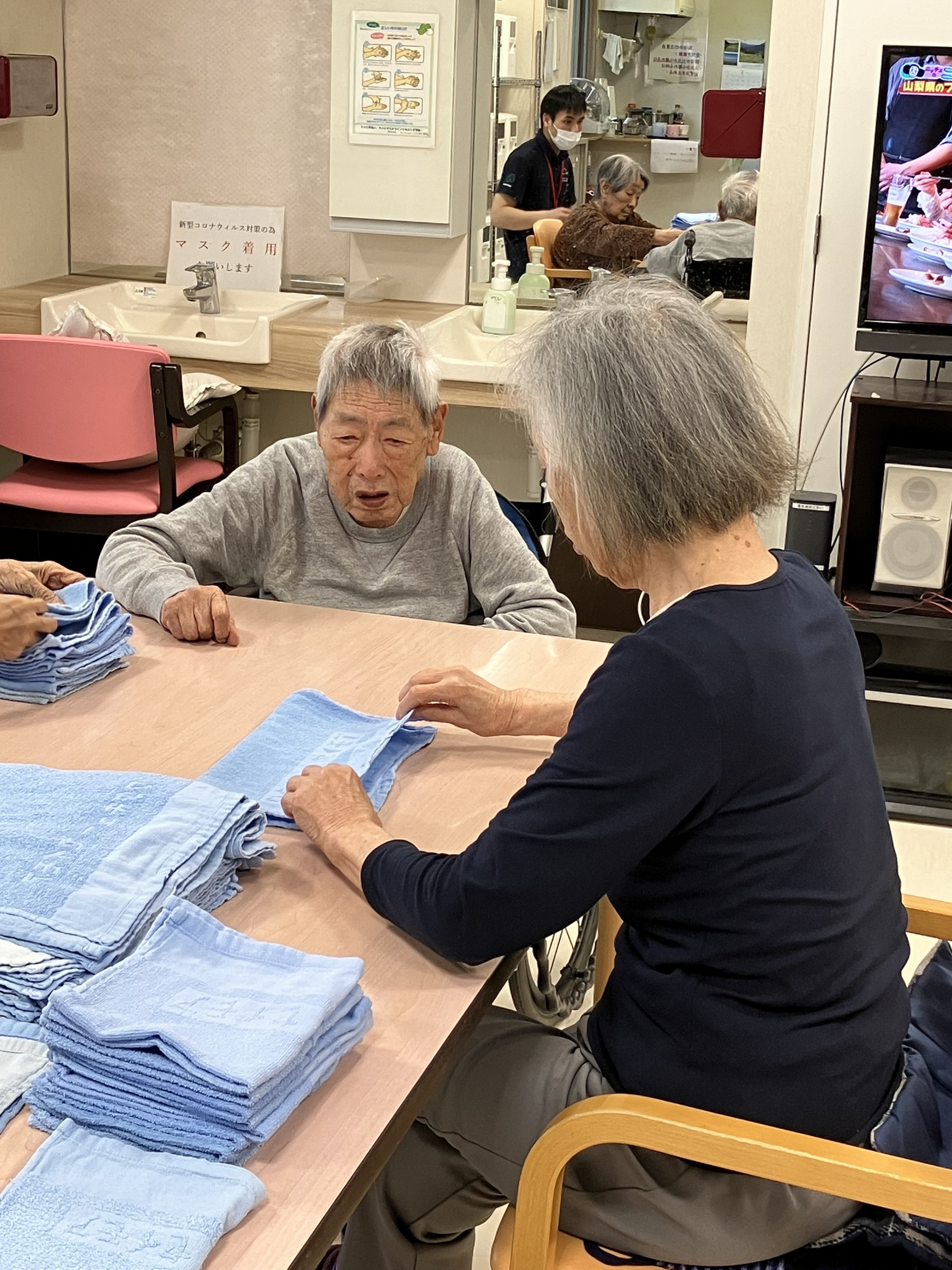 2024.05.11 活動報告 【2F】皆でタオル畳みます。 Tweet シェアする 土曜日にタオルが届きましたので、皆でそのタオルを畳みました。 とても早く終わることができ、感謝いたします。 とても良い協力でしたね~ エレン 前の記事 2024.05.12 活動報告 【3F】好きな物作る日に、おにぎりです~ 「準備」 次の記事 2024.05.11 活動報告 【2F】アジサイを作りました 一覧へ戻る