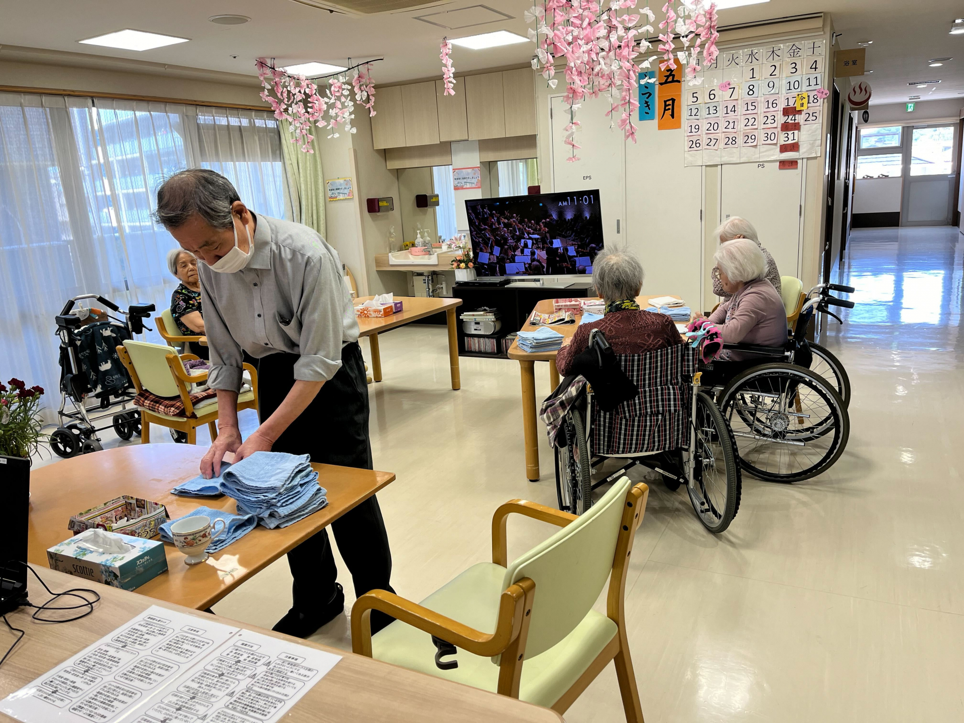 2024.05.18 活動報告 【3F】テブルを拭いてもらいました (≧▽≦) Tweet シェアする ご飯の前にテブルを拭いて頂きました。 そして、タオルも畳んで頂きました。 色々手伝ってくれてありがとうございます。 3階 エレン 前の記事 2024.05.18 活動報告 【3F】お散歩日和☆彡 次の記事 2024.05.17 活動報告 【1F】パン屋さんが来る日 一覧へ戻る