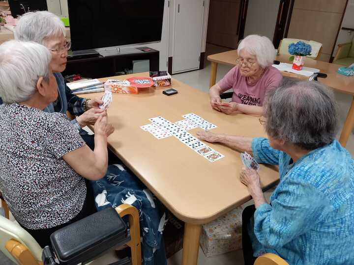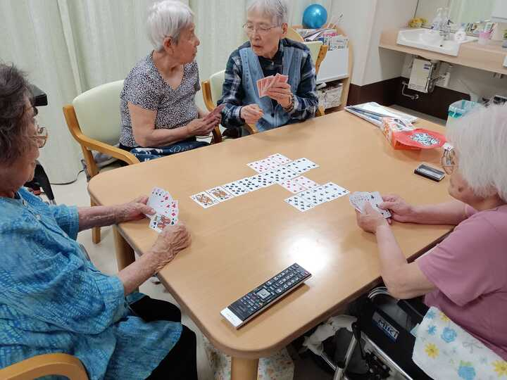 夕食後、熱心に「七並べ」をされる皆さまです。