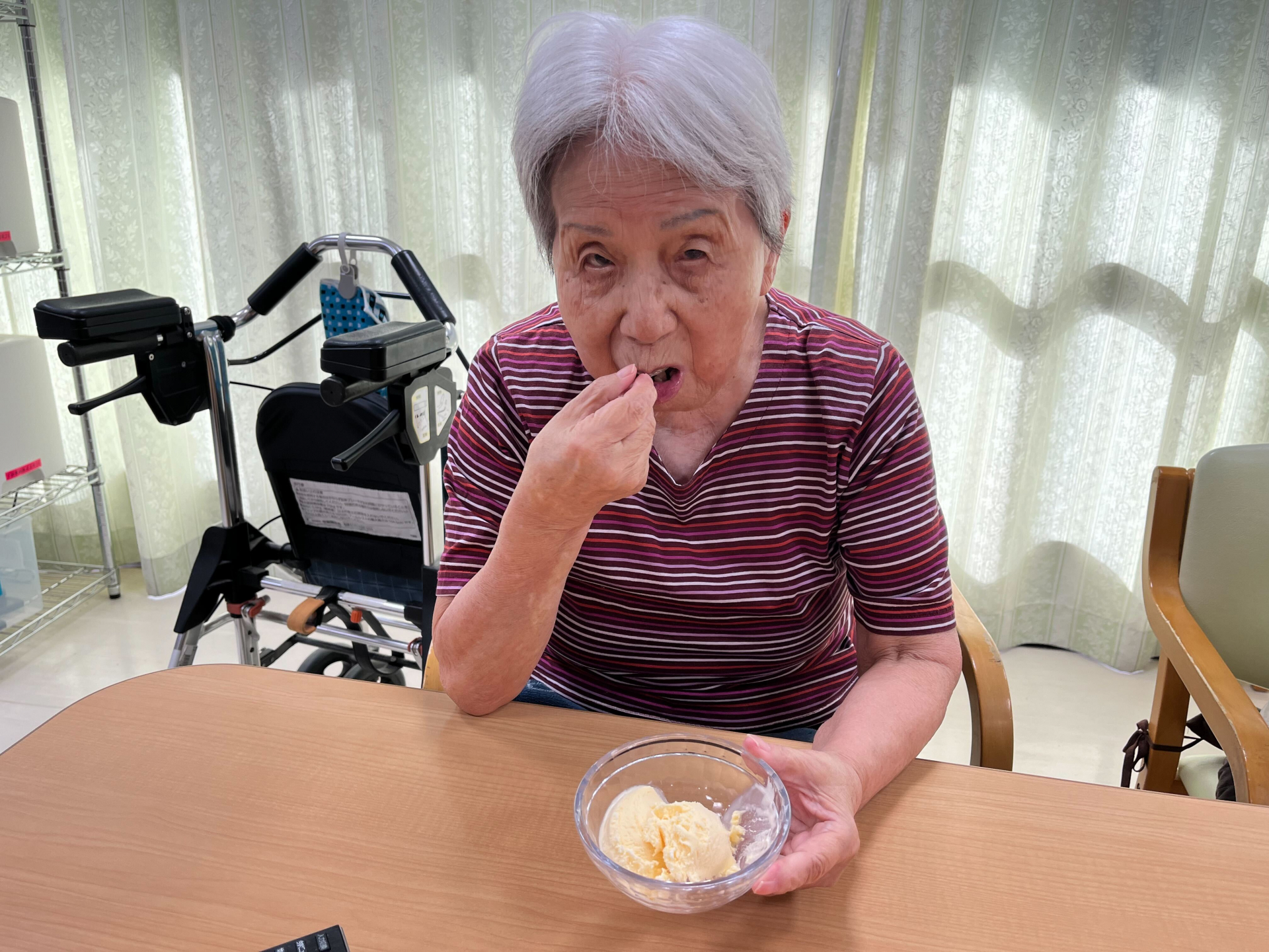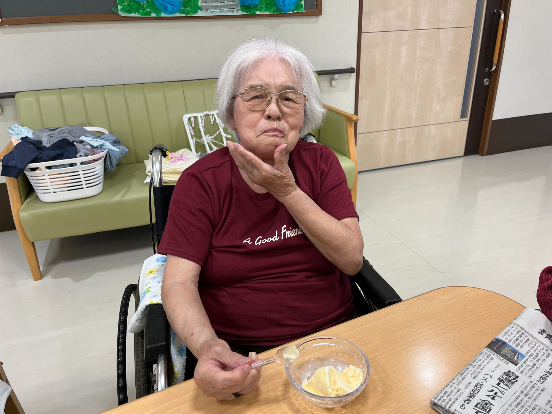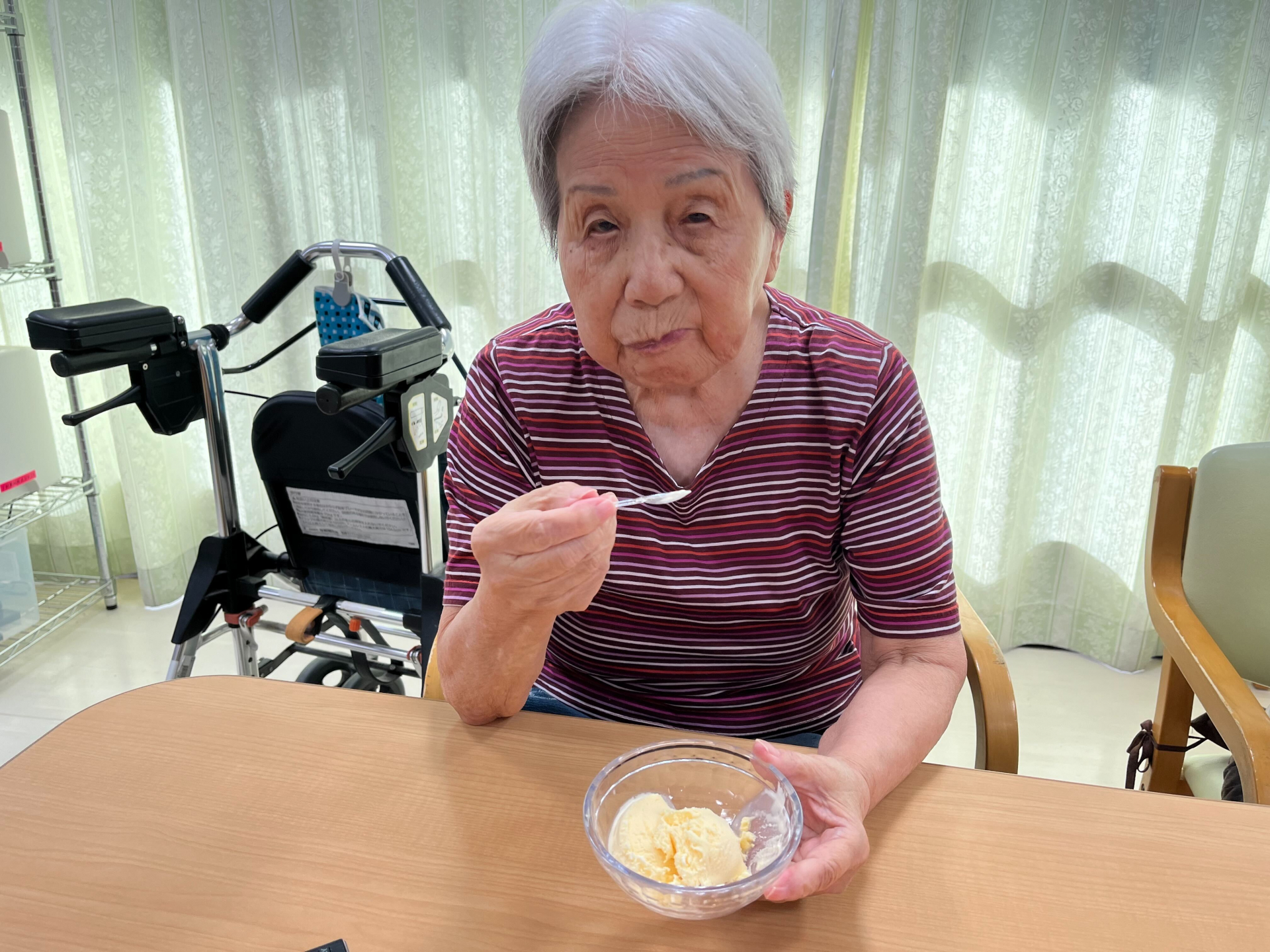 今日は暑いので、おやつの時間に「アイスクリームを食べいたな~」と*様が職員に話しました。3階の職員さんはすぐ近くのスーパーにアイスクリームを買っていただきました。