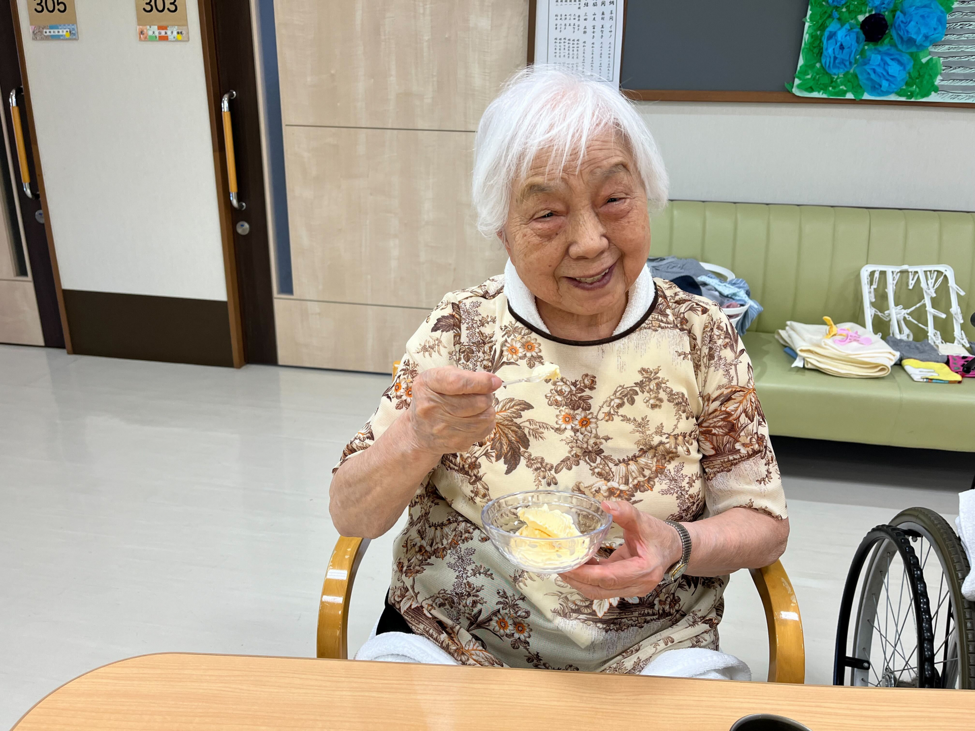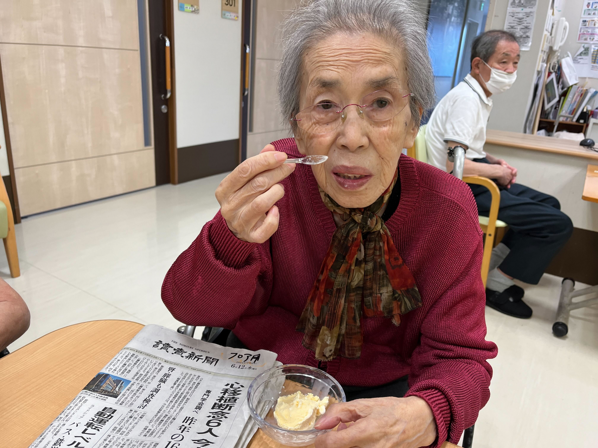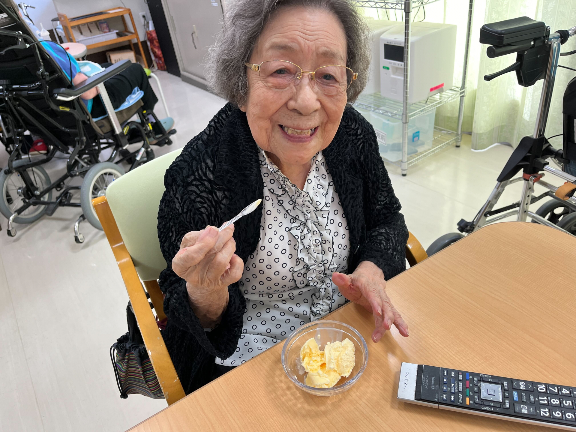 今日は暑いので、おやつの時間に「アイスクリームを食べいたな~」と*様が職員に話しました。3階の職員さんはすぐ近くのスーパーにアイスクリームを買っていただきました。