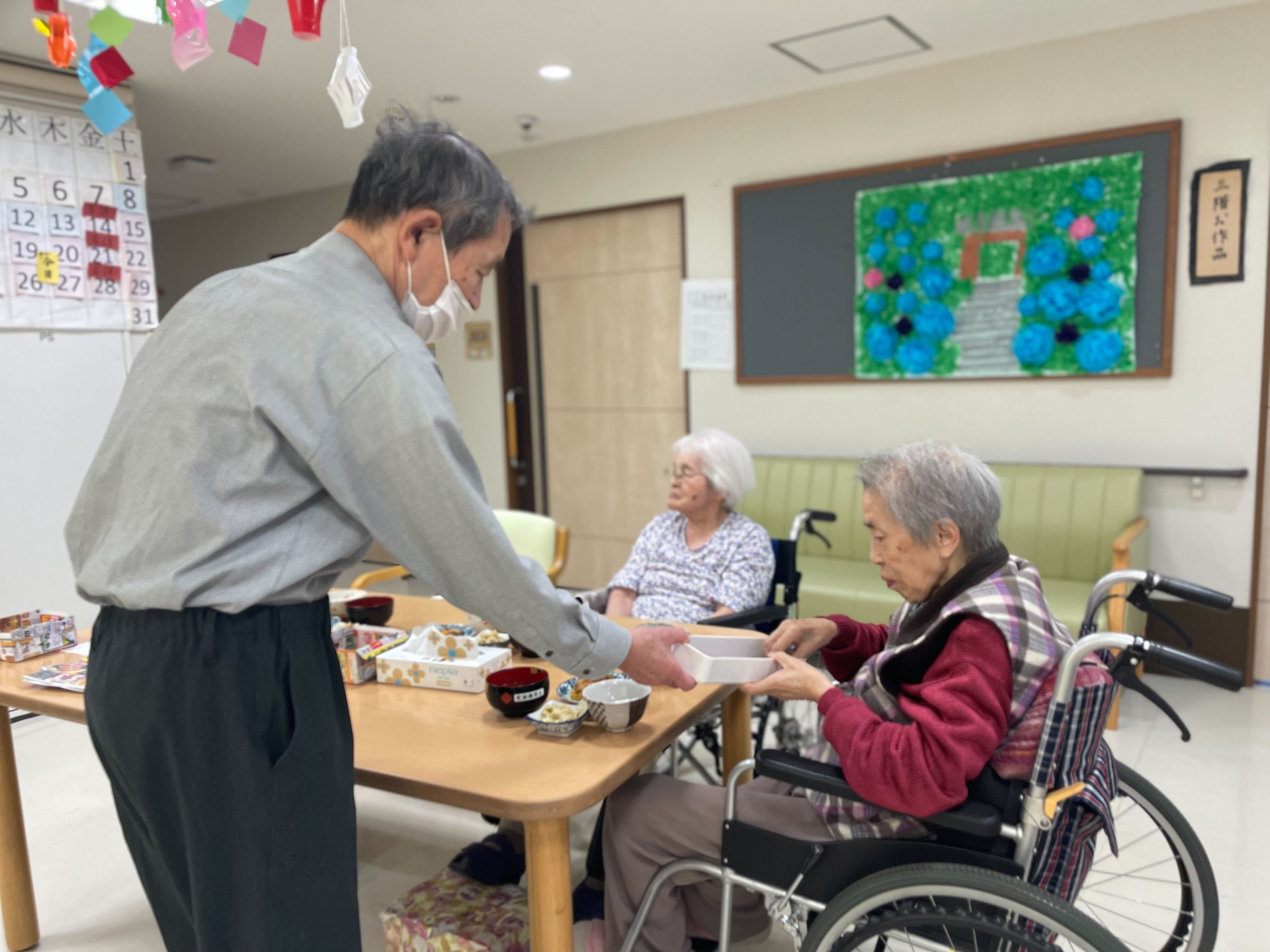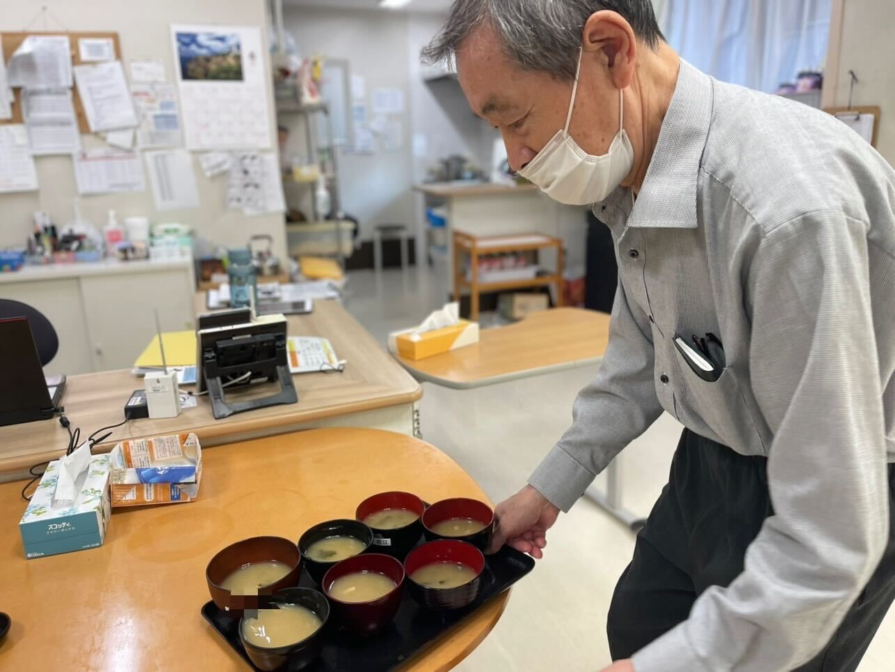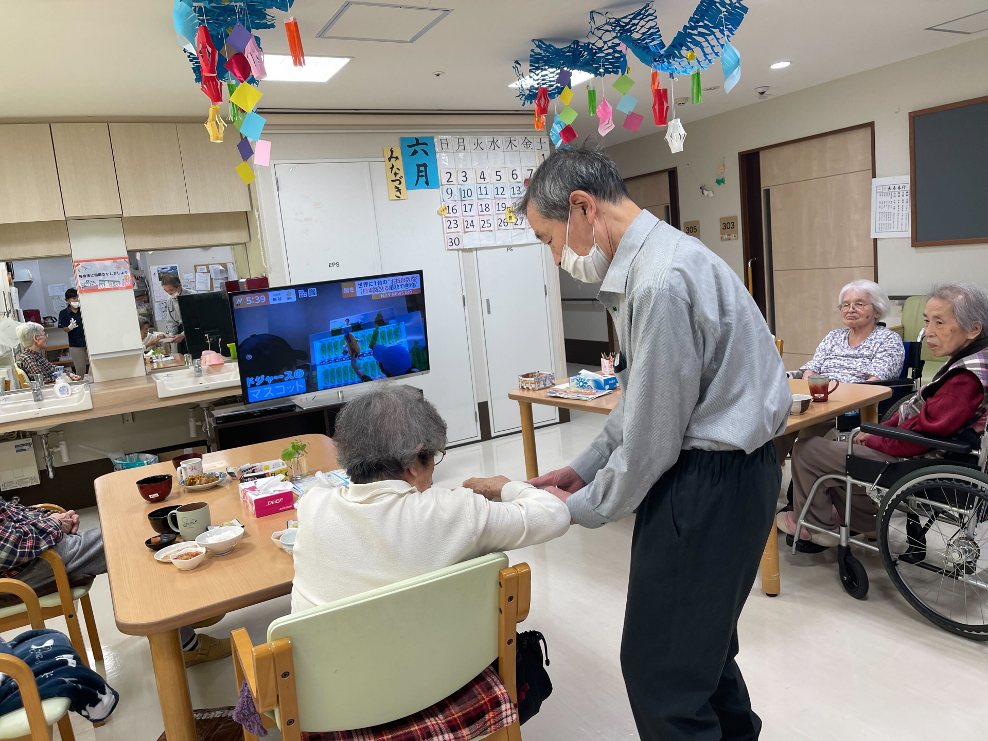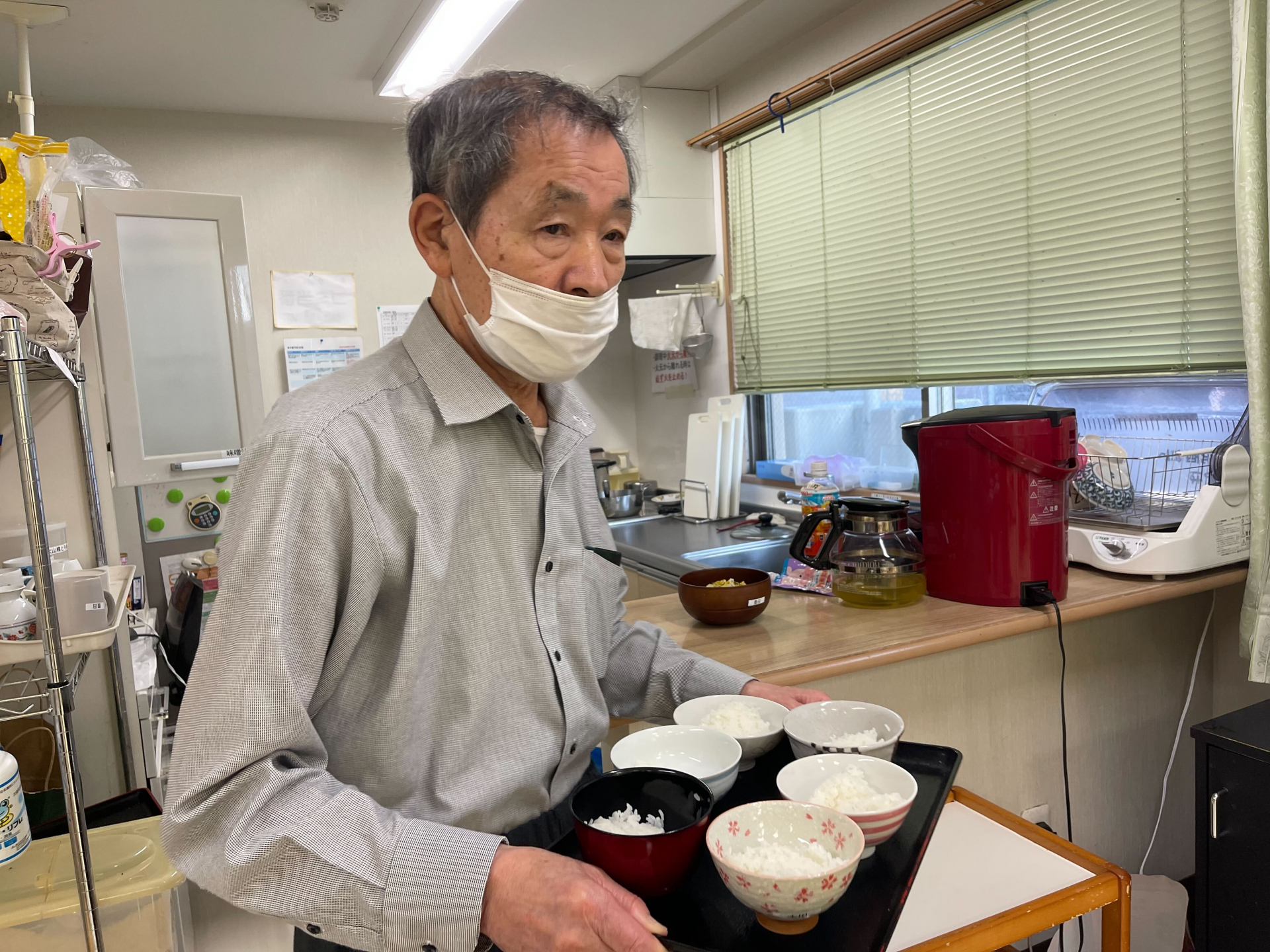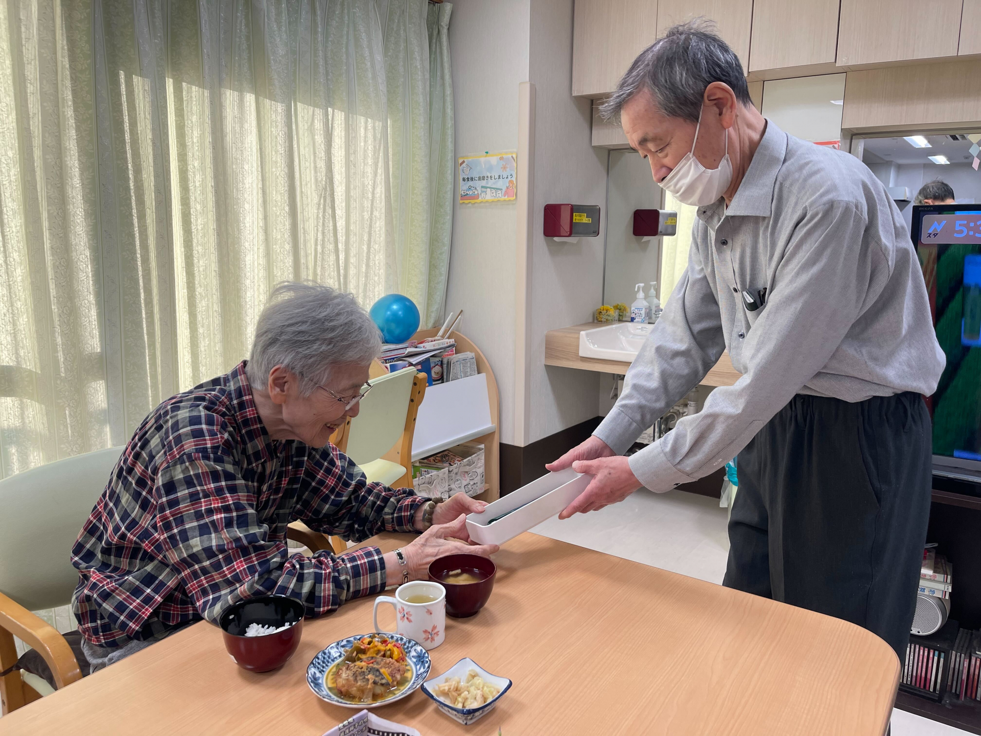 今日の晩御飯は職員が準備している間に*様が台所に来て「お姉さん、やる事がありますか?手伝いますよ~」と仰られていました。